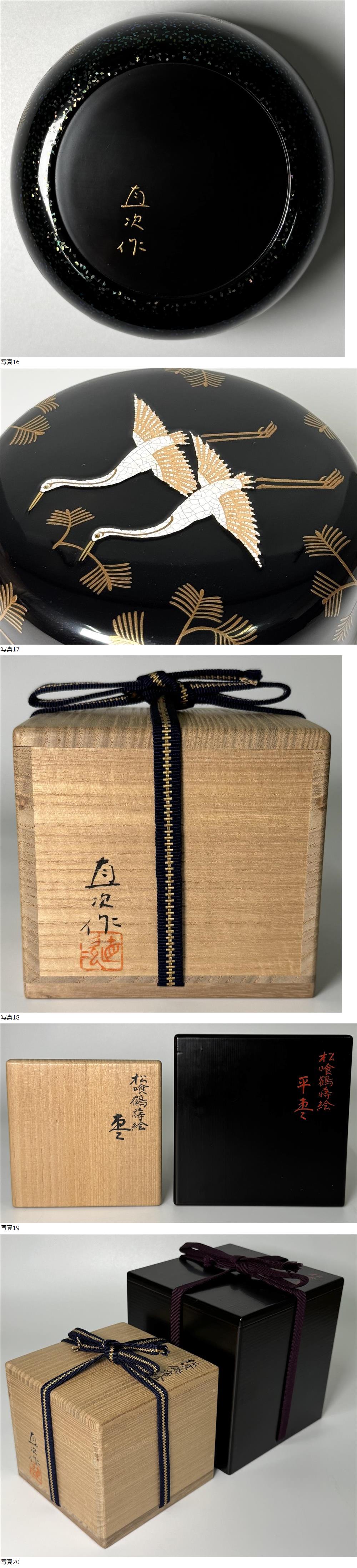 希少作【人間国宝 寺井直次】作 松喰鶴蒔絵平棗 共箱 塗二重箱 最上作 螺鈿 本物保証 收藏
