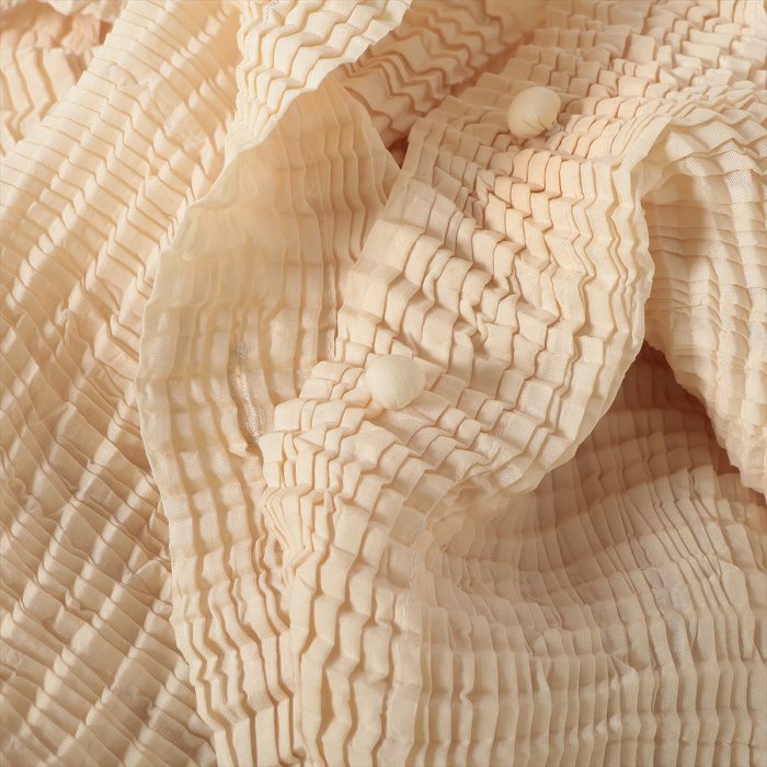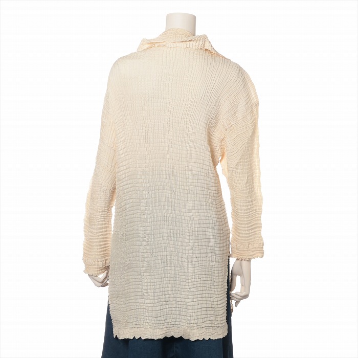 | イッセイミヤケのプリーツ長袖シャツ。 規則的に入ったプリーツが伸縮するたび生地に凹凸を生み出します。 伸縮性が高い機能的な素材感は軽量で着用時でも動きやすく、パンツやスカートに合わせやすい1枚です。 イッセイミヤケらしいアート的要素を感じる逸品です。 |