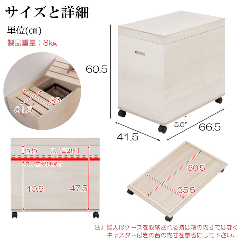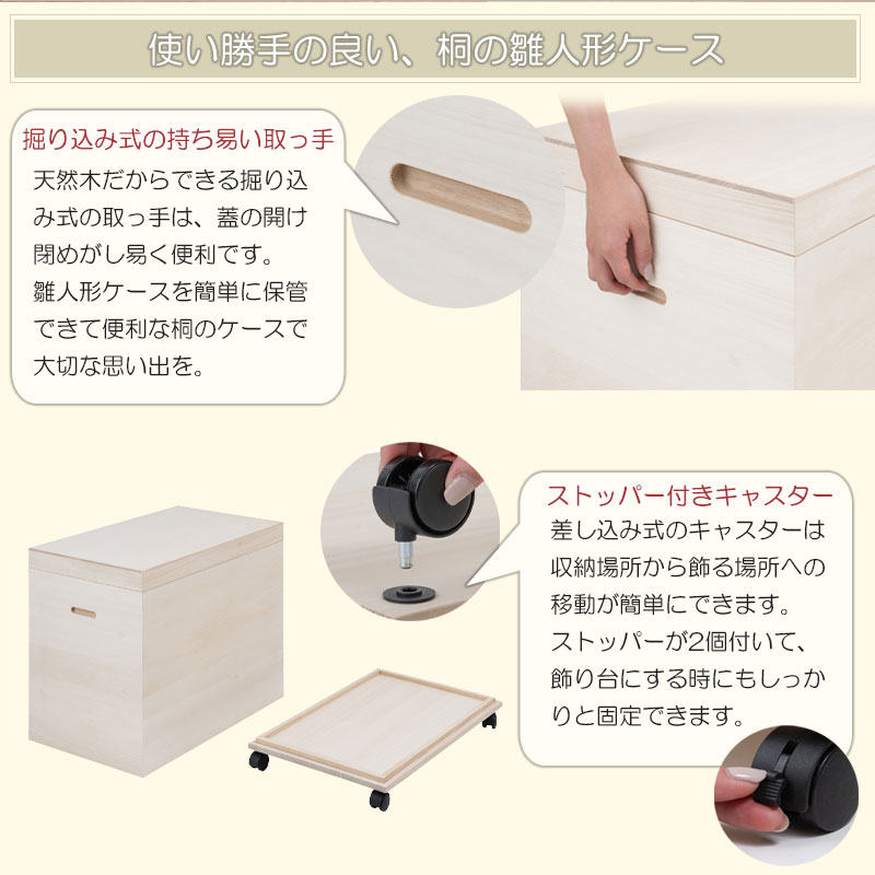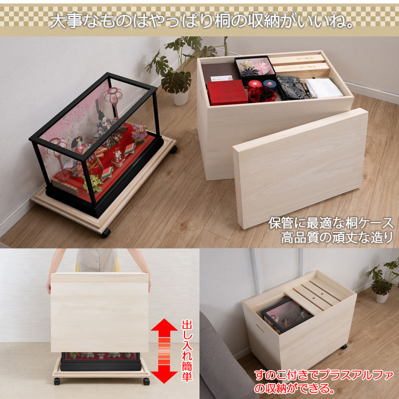 桐衣装ケース 高さ60.5cm 奥行66.5 日本製 国産 押入れ 雛人形 ひな人形 衣裳ケース 桐箱 キャスター付 桐たんす 桐箪笥 桐タンス 收藏