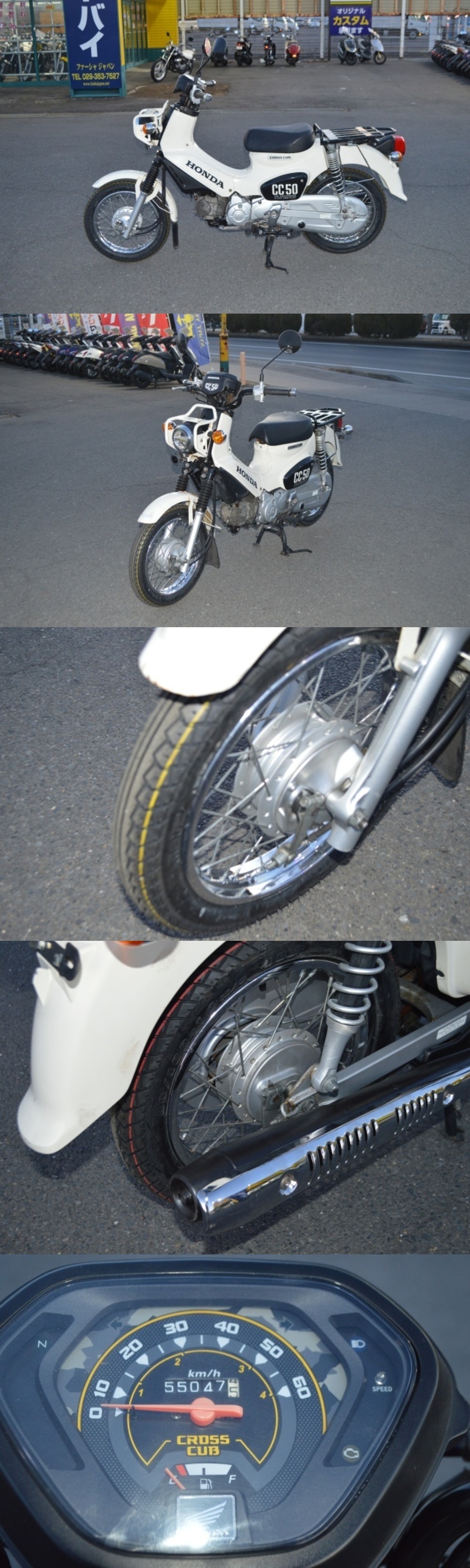 | ご覧頂き誠にありがとうございます。 展示されてる車両は中古車両になりますので傷や錆等はございます。 店内は作業場兼用となっておりますので、安全確保のため店内への入室はご遠慮下さい。 ご理解頂きますよう、よろしくお願いします。 人気のクロスカブ入庫しました! 前後タイヤ新品! 店頭でも販売しておりますので、売り切れの場合は御容赦下さい。 整備点検と試乗してからのお渡しになりますので、納車まで2週間~1か月ほどお時間がかかります。 こちらの車両は引き渡し後の保証等は一切ありませんので、ご理解いただきますようよろしくお願いします。 ミスの無いように努めておりますが見落としや記載ミス、個人差や個体差等あるかもしれません。 ご購入は全てを納得しノークレーム、ノーリターンをお約束頂いた物とします。 登録は御客様にお願いしております。 当店から「販売証明書」を発行いたしますので、所轄の市町村役場の税務課にて手続きして頂ければナンバーと登録書が無料で発行されます。 印鑑が必要になる場合もありますので、ナンバー登録の際には印鑑をご持参頂きますようお願いします。 詳しくは所轄の市町村役場の「税務課」にてお問合せください。 車両代金のほかに、下記別途料金がかかります。 ご了承下さい。 自賠責保険料(12ヵ月) ¥ 6,910 自賠責のみ現金でのお支払いになりますので、。ご理解いただきますようよろしくお願いします。 詳しくはお問合せ下さい。 ファーシャジャパン水戸店 茨城県水戸市吉沢町354-47 029-353-7527 営業時間AM11:00~PM7:00 定休日 金曜日 |