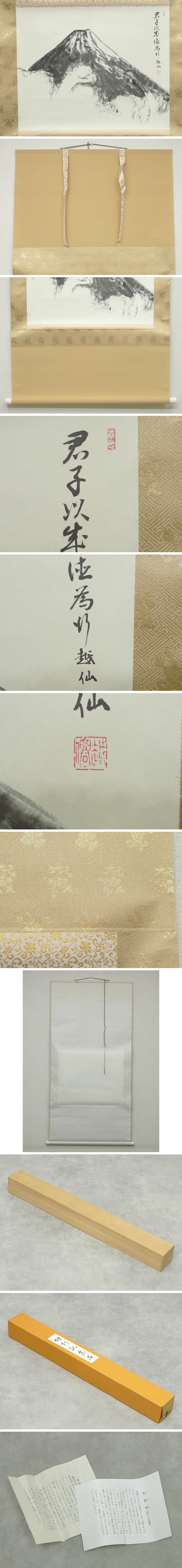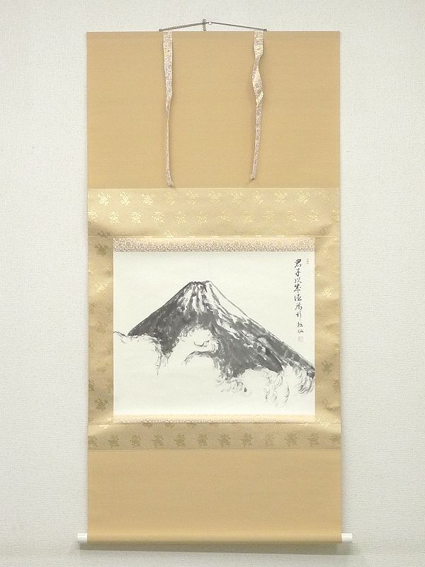 1027H01*2C▲立正佼成会開祖 庭野日敬「富士」工芸掛軸 越仙 紙本 風景画 山水図 日本画 絵画 日本の宗教家 收藏