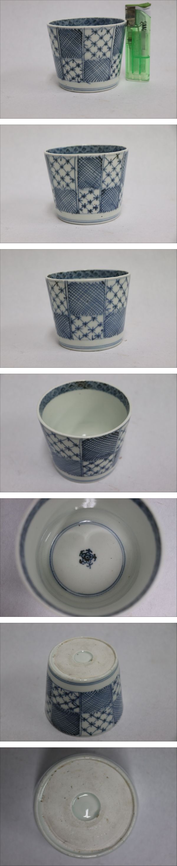 | 商品説明 | 商品名:江戸期 古伊万里 染付 市松文 蕎麦猪口 付属品:なし サイズ:高さ6.7cm、口径8.3cm、高台6.2cm。 状態:時代のスレのみ無疵になります。 |