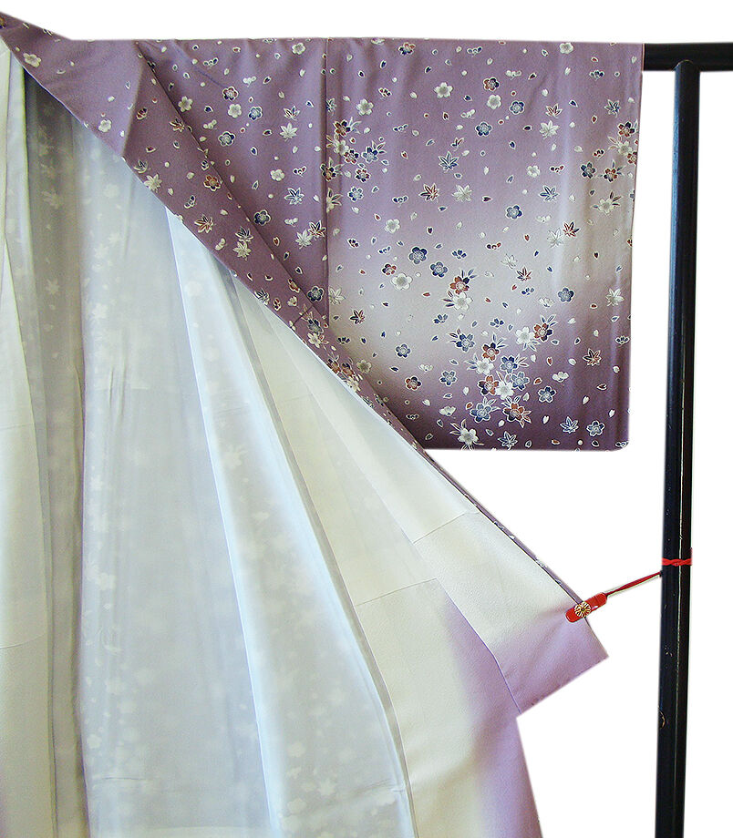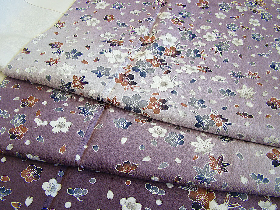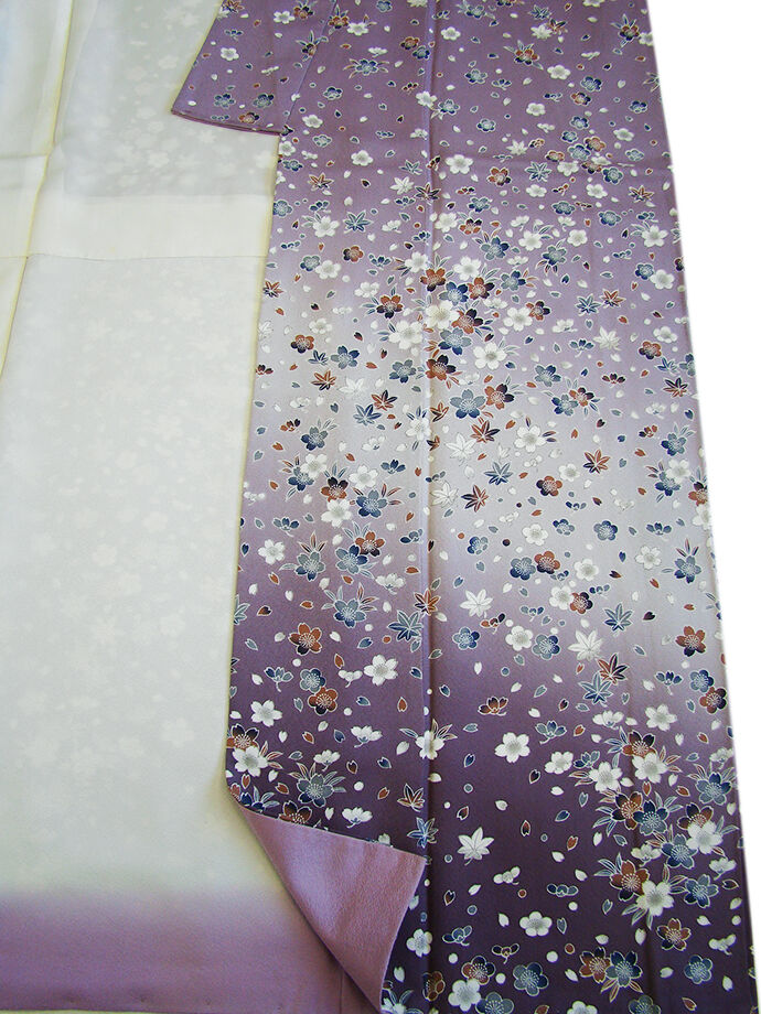 | 商品説明 | こちらのお品は「袷」ですので10月から5月までお召頂ければと思います。 しなやかなさらりとした手触りの着心地良い重めのちりめん地の生地、 りんどう色地に裾にかけて白藤、深紫色ぼかしに花草柄の染柄、 八掛は紅藤色(正絹)、幅広い年代の方にお召し頂けます。 |