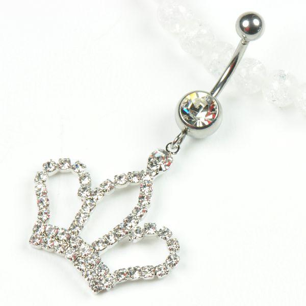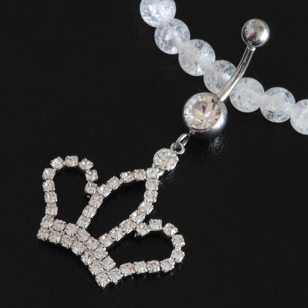 ヘソピアス ゴージャス 王冠 クラウン 14G(1.6mm) クリアジュエル デザイン バナナ ボディピアス イヤーロブ 14ゲージ HESO-10026┃ 收藏