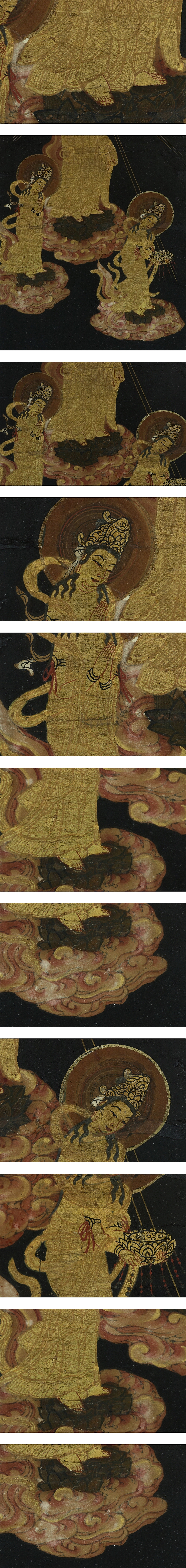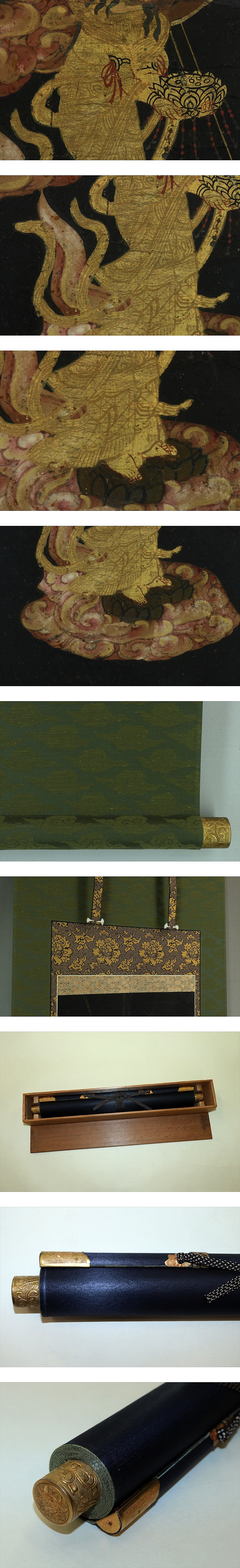 古仏画【三尊仏】 本紙は、破れ痕、修理痕があります。 表装は、良好です。 【サイズ】 作品 横約26cm×縦約62cm 表装 横40cm×縦約126cm |