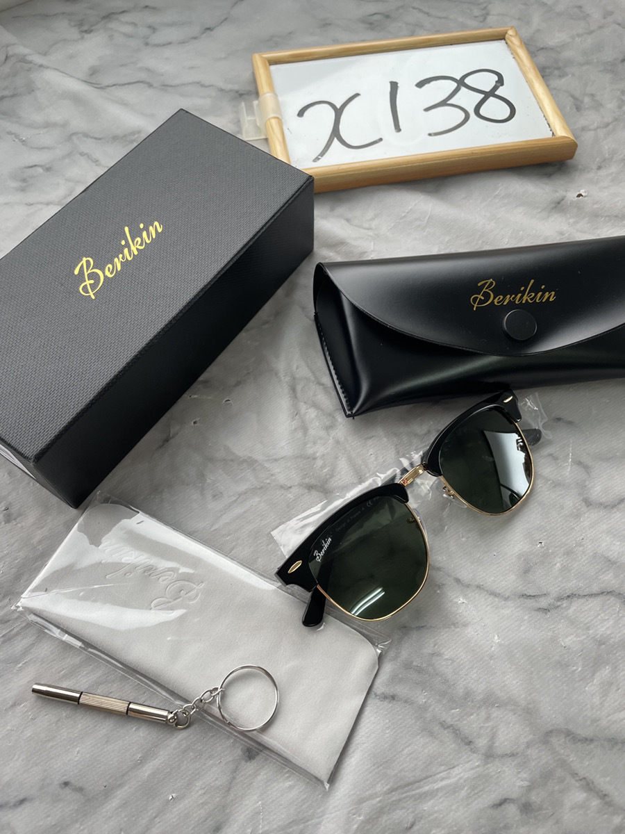 [Berikin] サングラス 偏光 ガラスレンズ クラシック サーモント ブロー ユニセックス UV400 UVカット ゴールド 金 ハーフフレーム 收藏