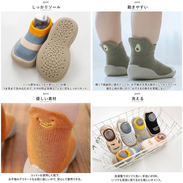 | 商品説明 | ・・ソックスとシューズを一体に☆バツグンの歩きやすさの「ソックスシューズ」が登場。 ・【ファーストシューズに】 ・柔らか素材のソックスと、屈曲性に優れたシューズが一体化!歩き始めたお子様のファーストシューズにぴったりのアイテム。 ・【履きやすい】 ・靴下感覚で履けるので、お子様も違和感が少なく着用できる。履き口は柔らかい靴下と同じなので、履きやすさ◎ ・【しっかりソール】 ・ソール部分はしっかり滑りにくい仕様。つま先まで包み込むので、ケガの防止効果も。小さい足をしっかりガード。 ・【動きやすい】 ・軽くて屈曲性に優れたソール。お子様の元気な動きにしっかりフィット。履き心地が良いので、お子さまの動きを邪魔しない。 ・【優しい素材】 ・コットンを使用した靴下。お子様のデリケートなお肌に優しいので、安心して使用できる。 ・【洗える】 ・洗濯機でのソフト洗い、手洗いがOK。いつでも清潔に保てるのも嬉しいポイント。 ・【2タイプ】 ・ハイカットとローカットの2タイプをご用意。それぞれデザインも可愛く選ぶのも迷っちゃう♪ ・【ギフトにも】 ・ワンポイント刺繍や、さりげないデザインが可愛く、女の子も男の子も使える!出産祝いや1歳のお誕生日のギフトにおすすめ。 |