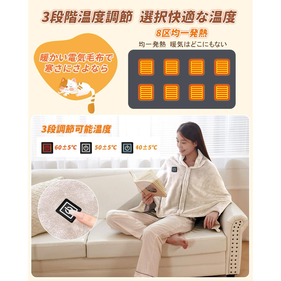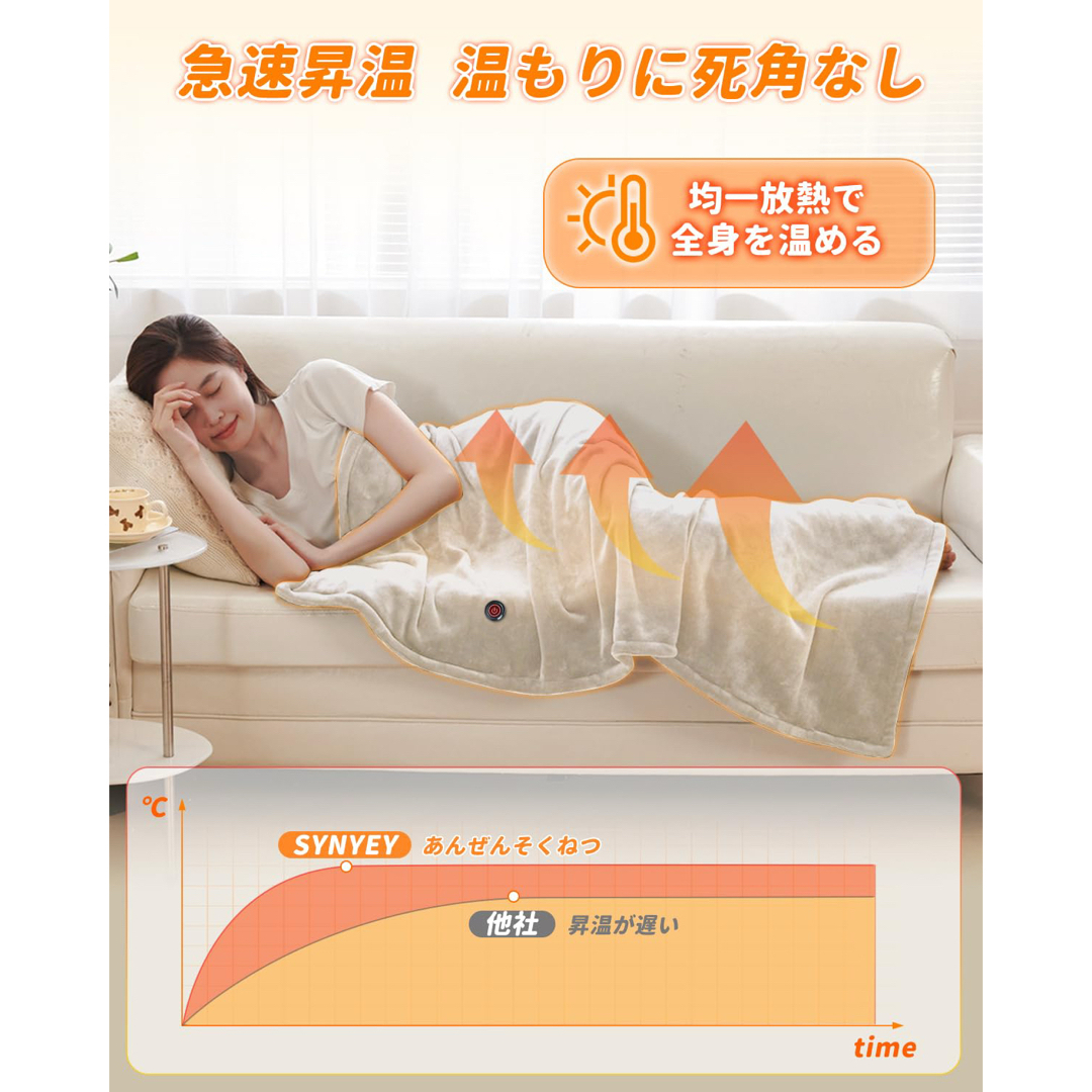 電気毛布 電気ひざ掛け ブランケット ふわふわ150×85cm ベージュ 收藏