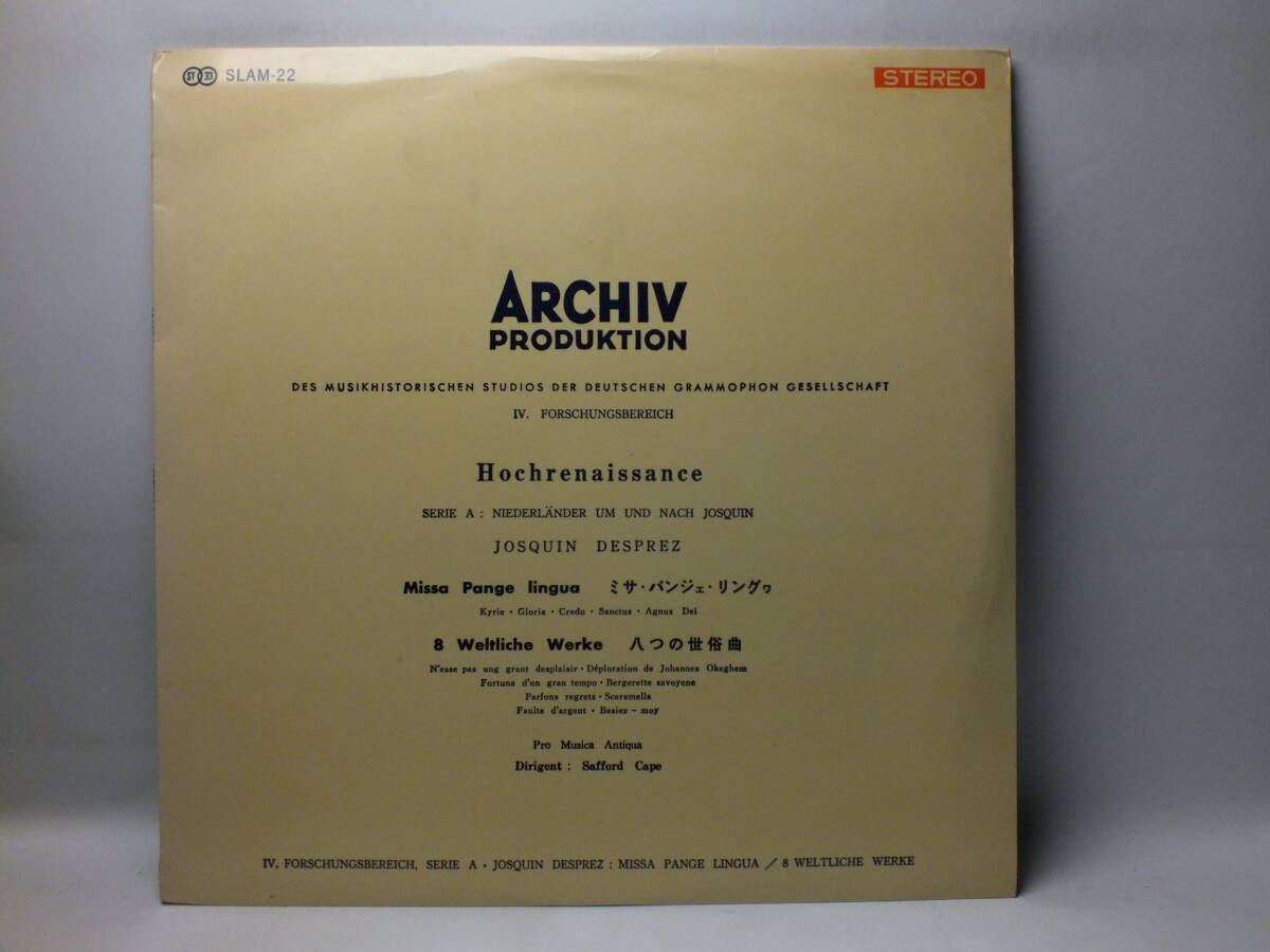 LP SLAM 22 プロ・ムジカ・アンティクヮ ジョスカン・デ・プレ ミサ・パンジェリングヮ 【8商品以上同梱で送料無料】2501 收藏
