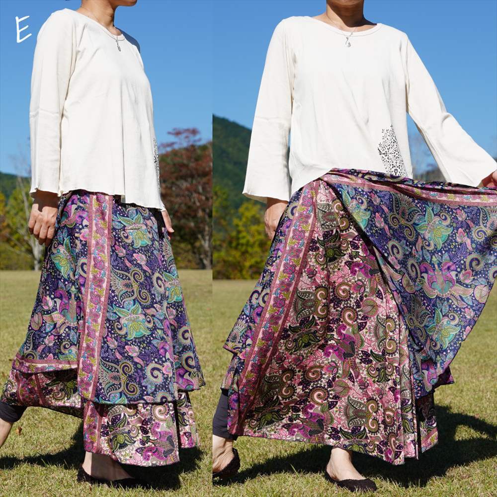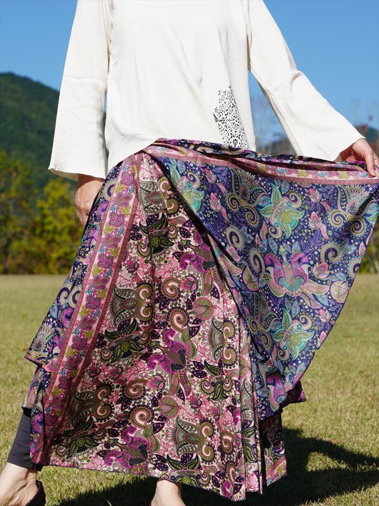 ★エスニック ラップスカート リバーシブル 送料込★新品 送料E★ビスコース素材 巻きスカート シルク フリーサイズ 收藏