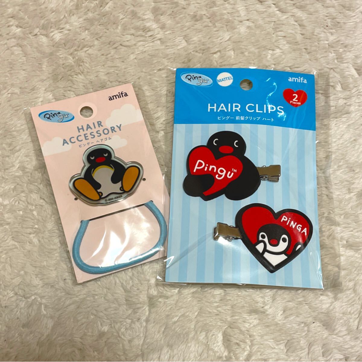 ピングーPINGU★前髪クリップ&ヘアゴムセット★アミファamifa★ピングー&ピンガ★クレイキャラペンギンヘアアクセキッズ女の子 收藏