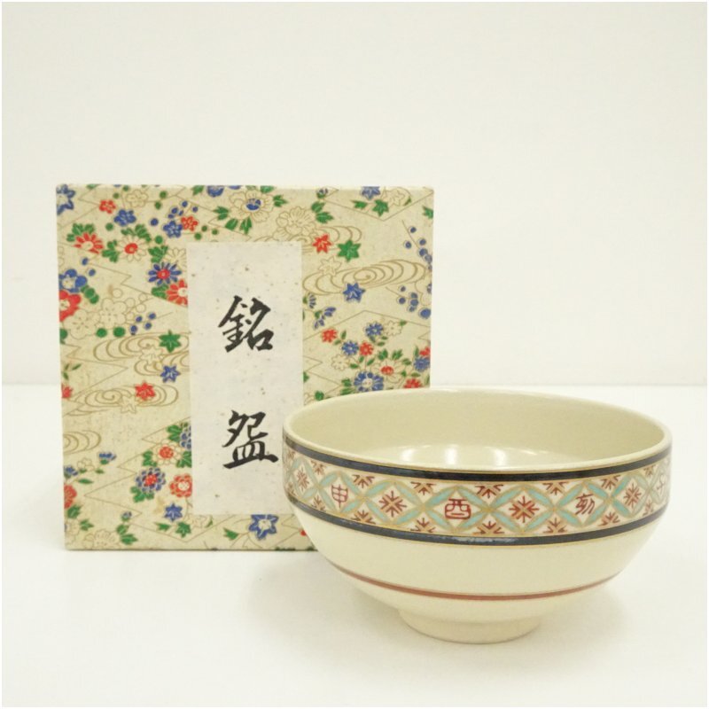 京焼 定靖造 色絵七宝繋干支戌茶碗(箱付) 收藏