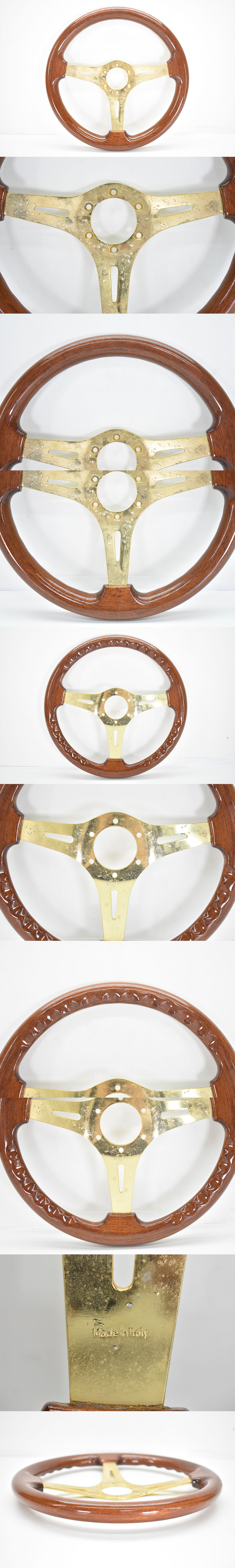メーカー不明 イタリア製 ウッドステアリング 直径約35cm [イタリア][木製][旧車][ハンドル][当時物]5M