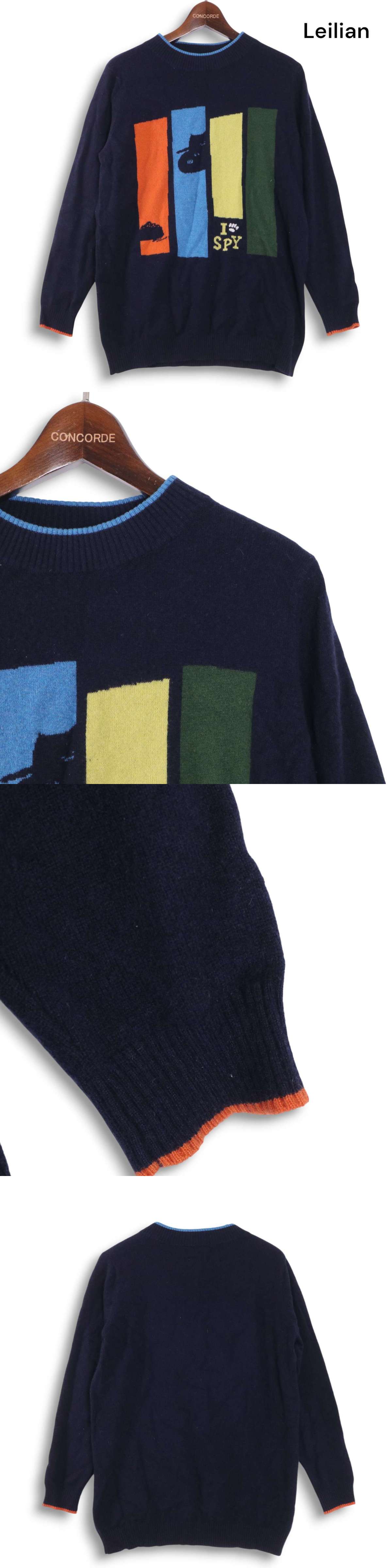 Leilian レリアン × スヌーピー★ PEANUTS カシミヤ100% セーター ニット Sz.9 レディース 紺 ネイビー 收藏