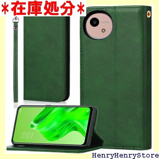 適用 AQUOS wish4 ケース 手帳型 ストラッ ル付き マグネット フリップ スタンド レトロ グリーン 1705 收藏