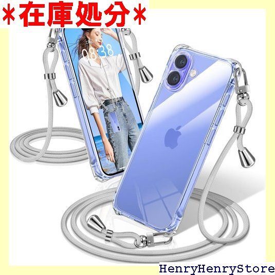 iPhone 16 ケース 用 クリア ショルダー 耐 目的キャリー ファッションデザイン TPUスマホ グレー 1945 收藏