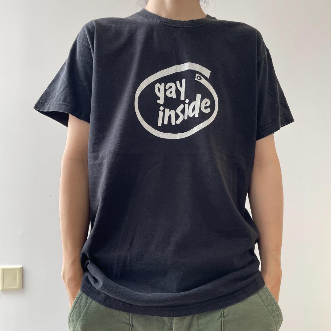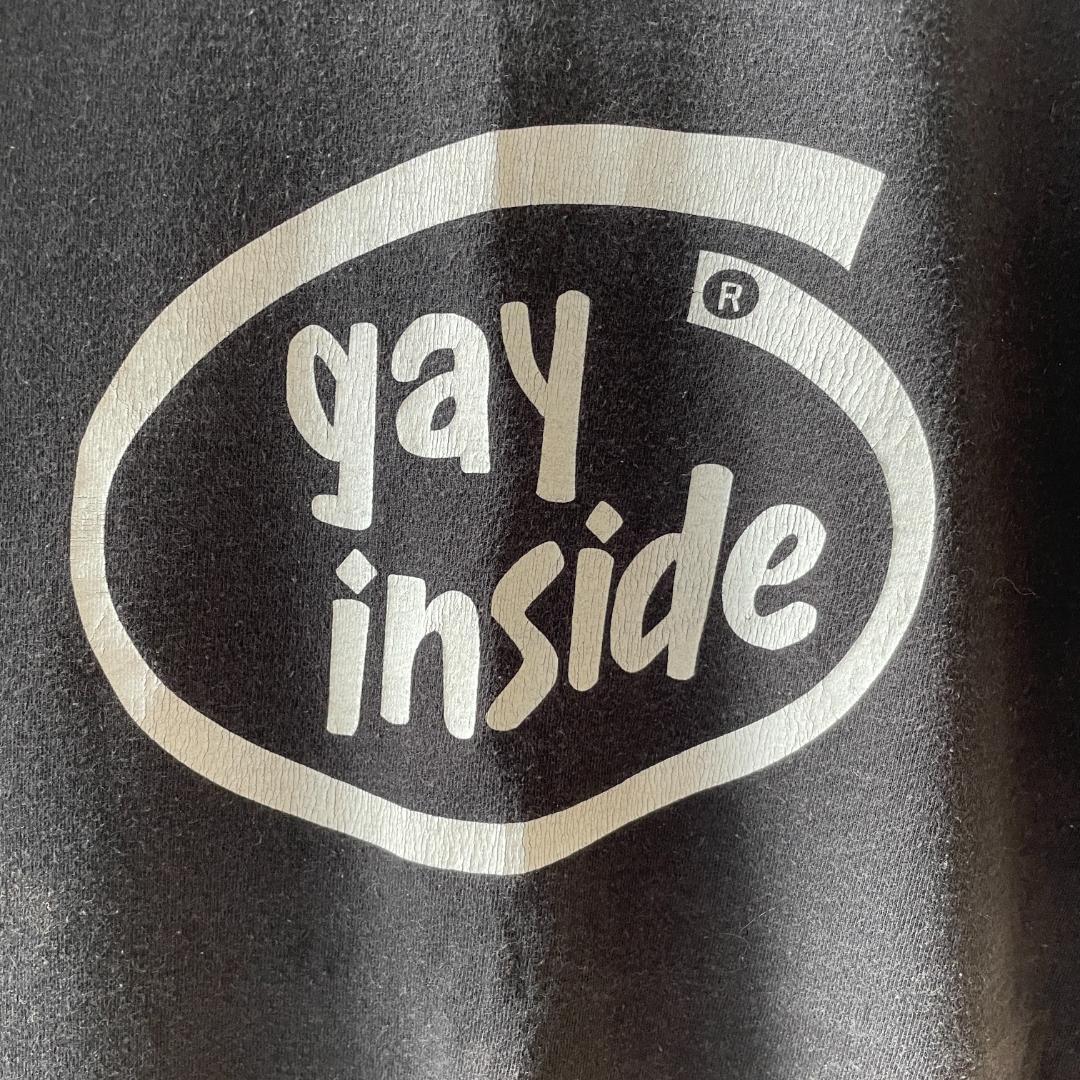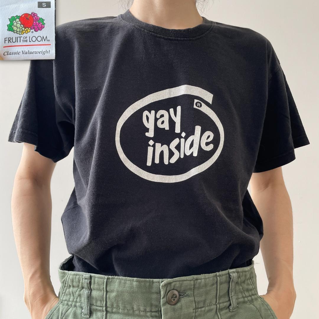 GG288 10s Tシャツ パロディ インテル LGBT ゲイインサイド ビンテージ 古着 シングルスチック Sサイズ フルーツオブザルームタグ 黒T 收藏