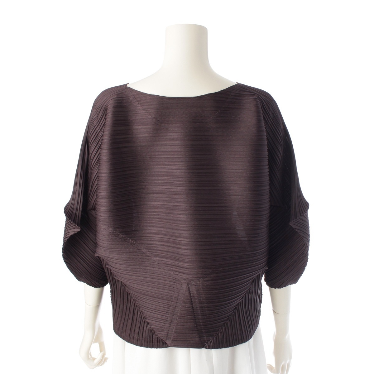 プリーツプリーズ イッセイミヤケ 23SS TOUR TOPS バウンスプリーツ 横段 フレアスリーブ トップス PP31JK451 ブラウン F【中古】 收藏