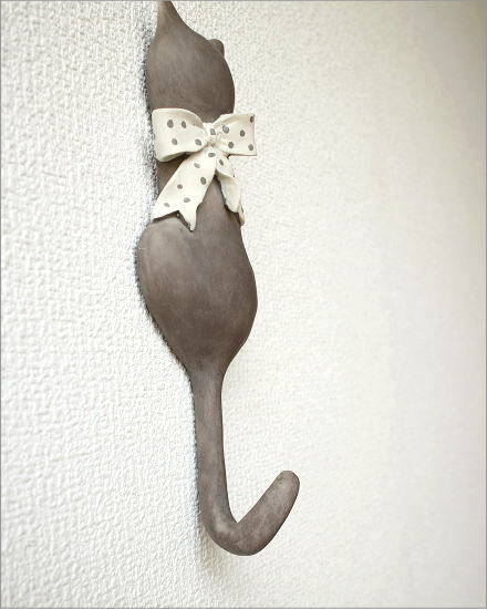 壁掛けフック ウォールフック 猫雑貨 ネコ ねこ 壁掛け キーフック 帽子掛け 鍵掛け アンティーク レトロ ネコのテールフック リボン 收藏