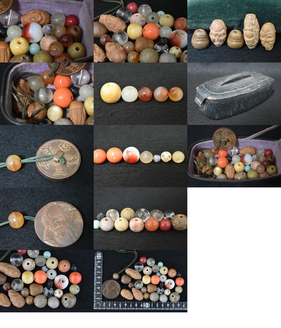 【光成】明治期「歯風・砡玉・瑪瑙・翡翠・仙人顔他・締玉30個」根付1付