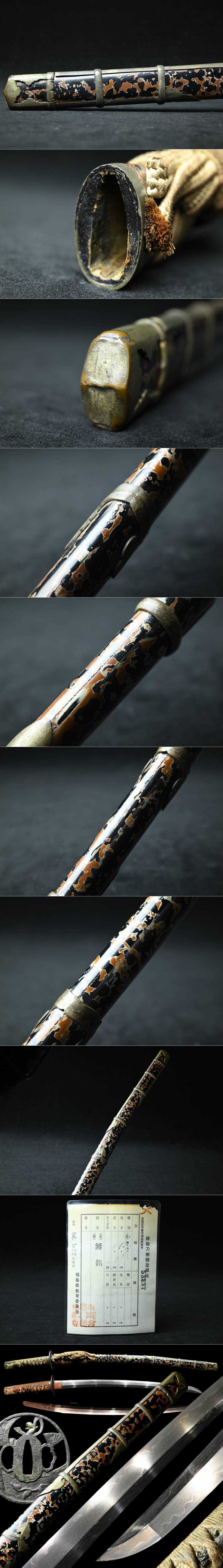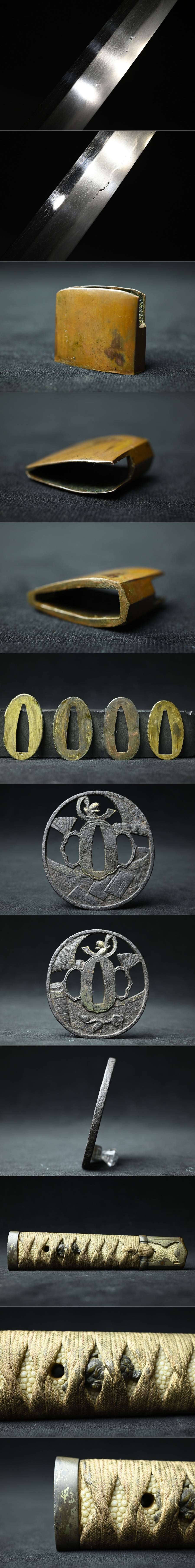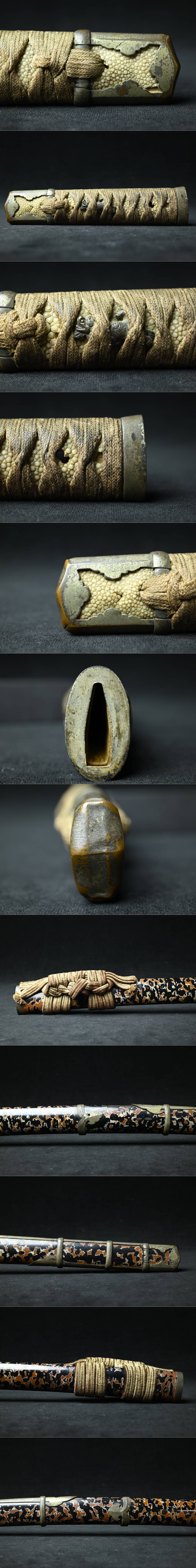【昊】時代 半太刀拵え 互の目刃紋 変わり鞘金象嵌透丸形透鍔 獅子目貫 刀剣武具[HJ12Rs] 收藏