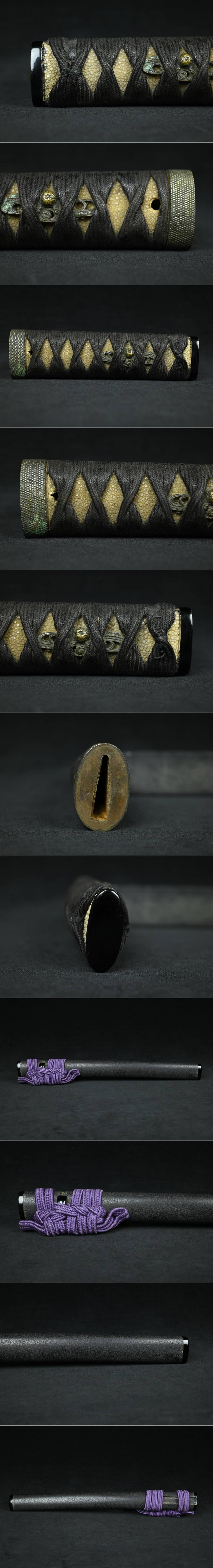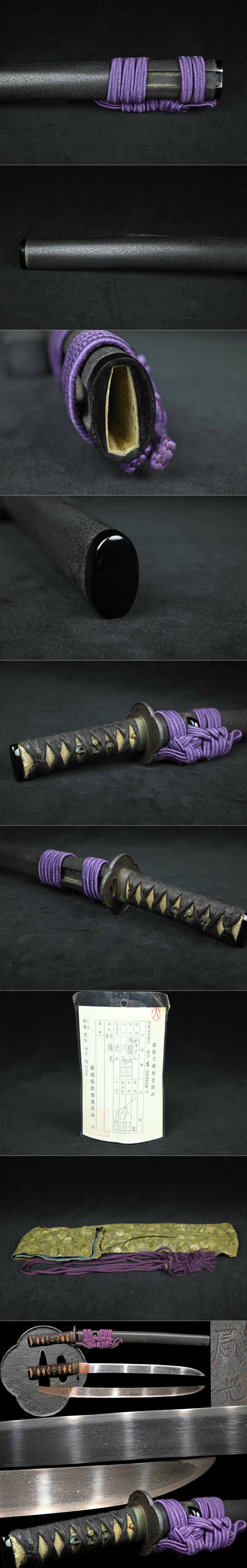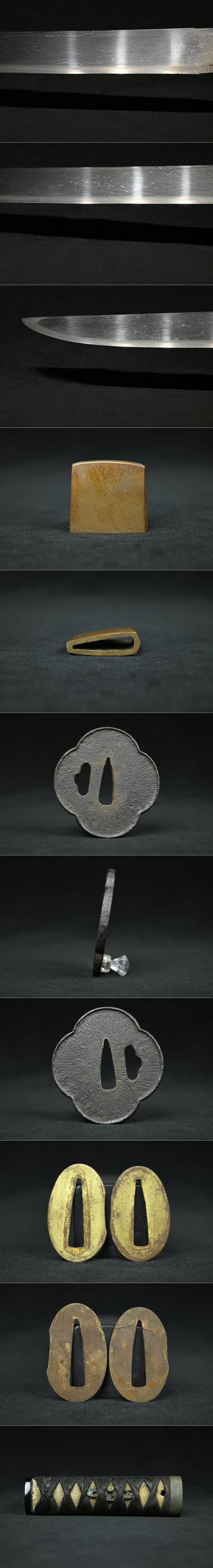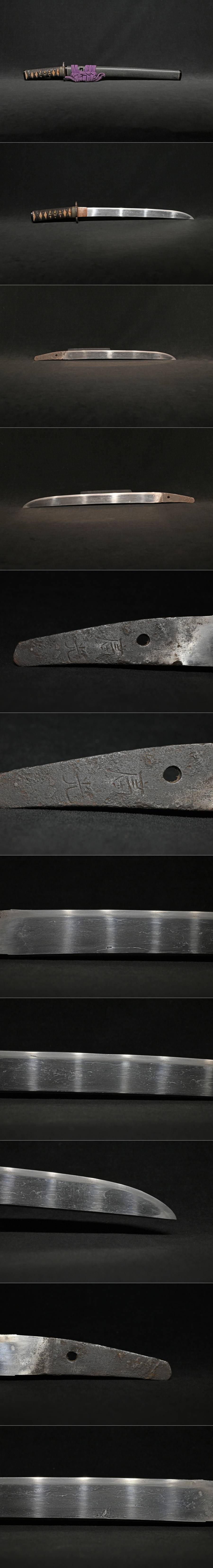 【昊】廣光 銘 平造 直刃 刃渡り34.4cm 花図目貫 外装入 脇差 刀剣武具[NS31Ji] 收藏