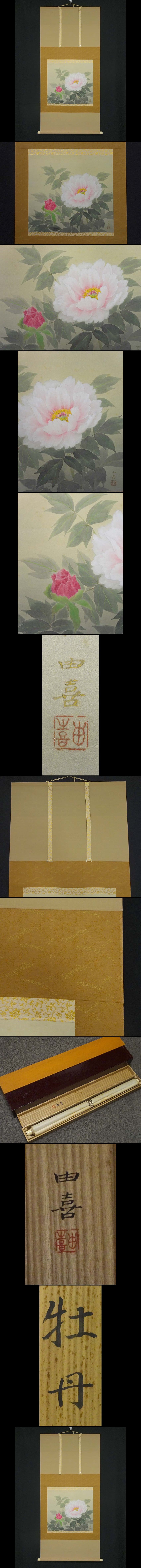 【模写】緑屋s■ 掛軸 肉筆 水越由喜「牡丹」 絹本 共箱 二重箱 掛け軸 日本画 旧家初出し品 bnim/9-274/B-3#100 收藏