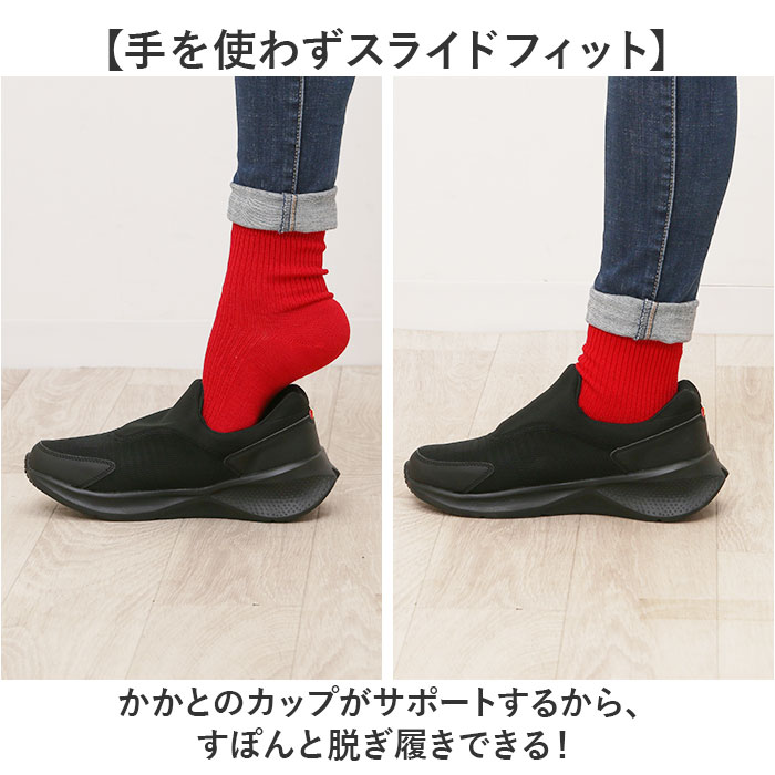 | 商品説明 | ・・【サッと履けて色んなシーンで活躍】 ・ハンズフリーでOK!「Arnold Palmer Slide fit 防水スニーカー」。 ・【手を使わずスライドフィット】 ・かかとのカップがサポートするから、すぽんと脱ぎ履きできる! ・【軽やかでストレスフリーな履き心地】 ・足さばきがスマートな軽量設計。旅行やレジャーなど、アクティブに動く日にもおすすめ。 ・【雨の日も安心】 ・接地面から4cmまで×4時間の防水設計!急な雨にも対応。(※完全防水ではありません。甲上部まで水に浸かると水が侵入する場合があります。) ・【程よいクッション性で負担を軽減】 ・ソフトで機能性抜群のインソールが、足裏にかかる衝撃を吸収。長時間歩いても疲れにくい! ・【存在感のある厚底ソール】 ・高さを出しつつも前後差を抑え、安定した歩行をサポート。ソールの厚みによる存在感もプラス。 ・【安定感のある歩行をサポート】 ・底面に凹凸加工を施したソール。1歩1歩しっかり進めて、安定性をキープ。 |