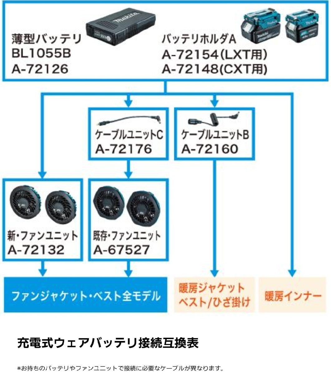 ■ファンジャケット、暖房シリーズに共通で使えるバッテリホルダA