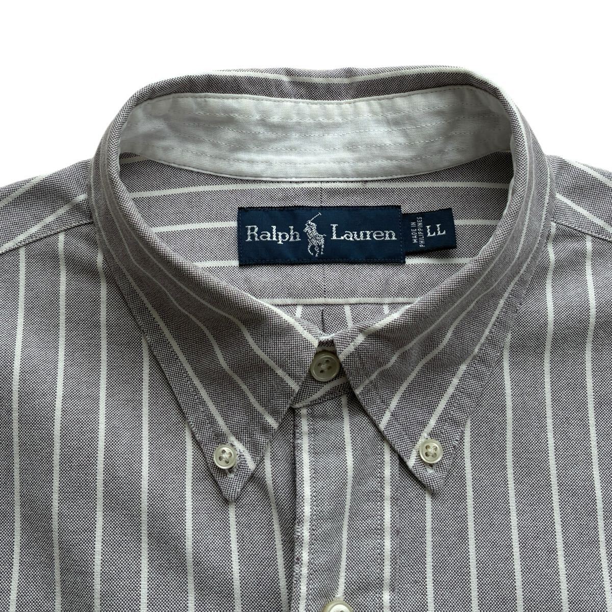 Ralph Lauren ストライプ ボタンダウンシャツ マチ付き グレー×ホワイト オックスフォード 長袖 ラルフローレン 收藏