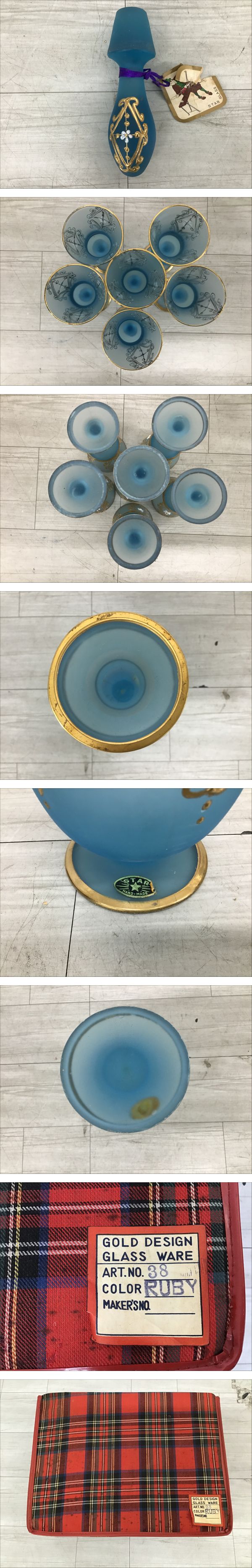 ●営TN538-80 GOLD DESIGN GLASS WARE デキャンタ 1個 / リキュールグラス 6個 / ART.NO.38 ヴィンテージ ガラス セット 箱付き /t 收藏