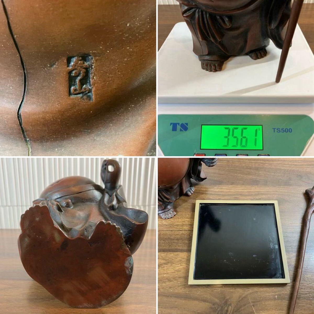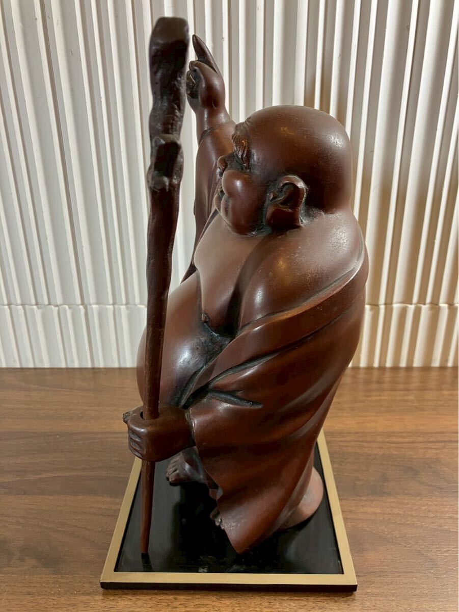 E608再 布袋様 銅像 秀山造 置物 古美術 七福神 縁起物 アンティーク