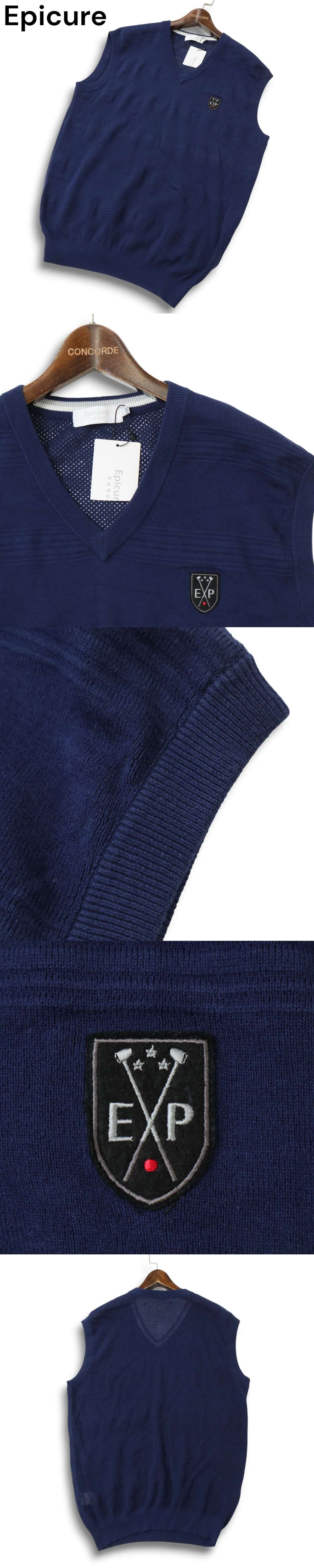 【新品 未使用】 Epicure エピキュール ゴルフ 通年 ロゴワッペン★ ニット ベスト Sz.XXL メンズ ネイビー 大きいサイズ 收藏