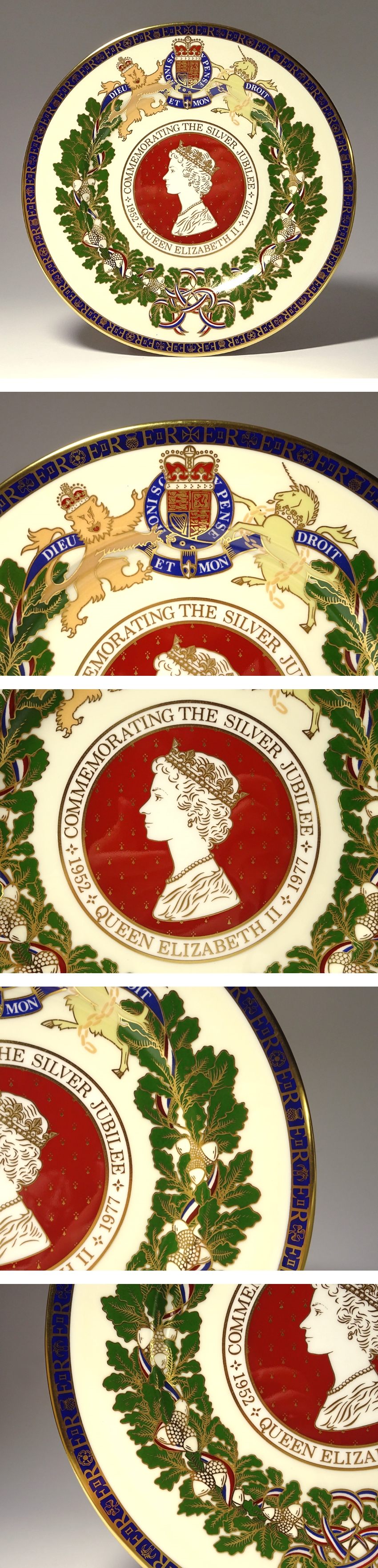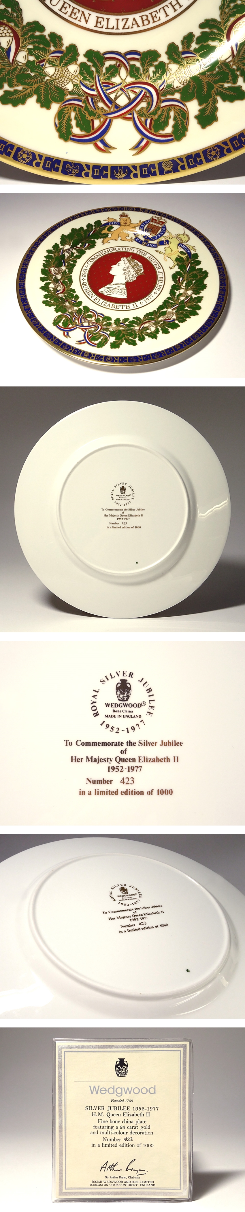 慶應◆英国王室御用達【WEDGWOOD ウェッジウッド】1977年 エリザベスⅡ女王在位25年記念 限定プレート423/1000 直径27cm 証明書付き 收藏