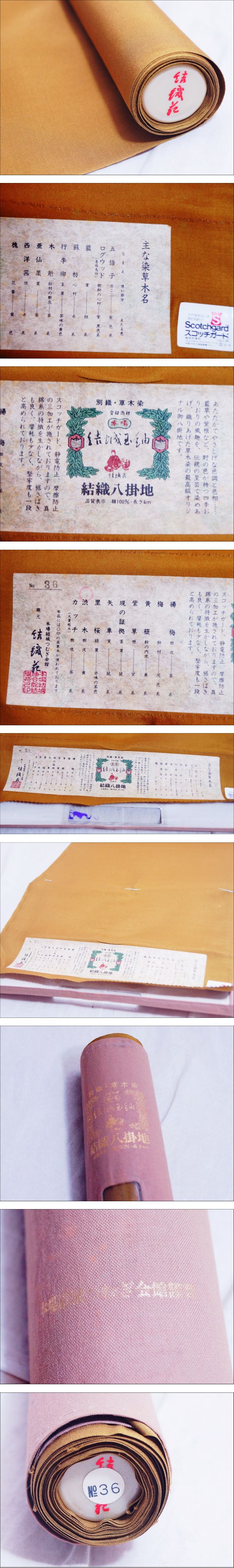 | 新古品★ 正絹 紬地 本場結城玉紬 結織八掛地☆反物☆金茶色・ 黄土色 サイズ:414cm 幅:37.5cm 状態:新品・未使用品保管品 | ||