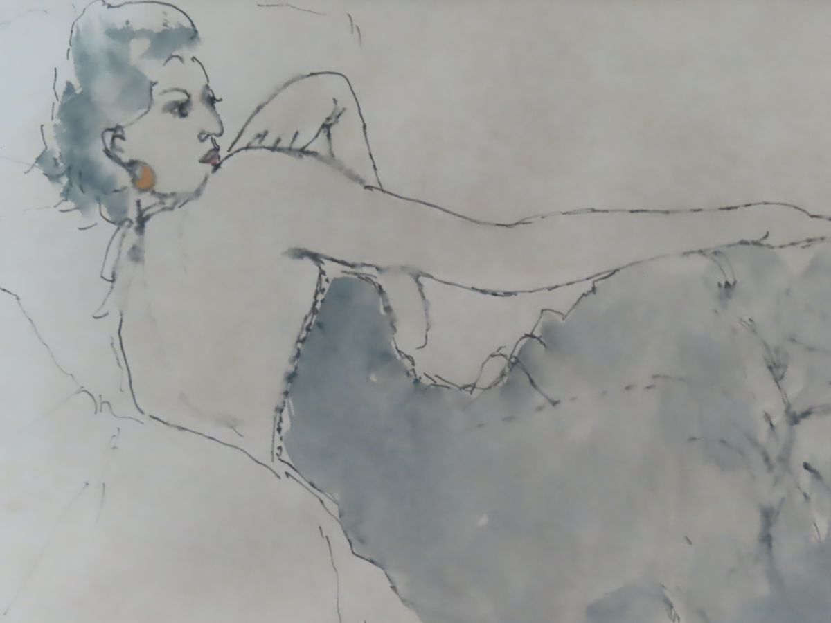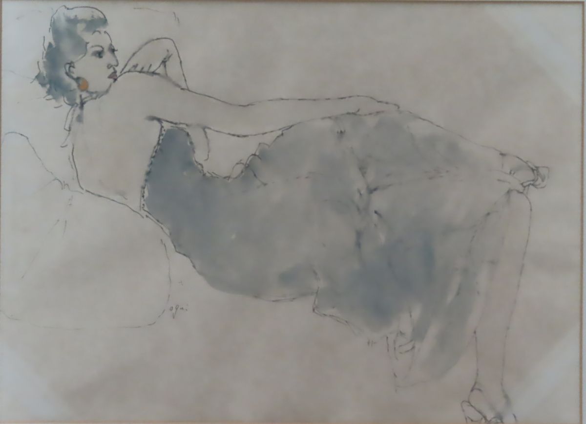 穂高「真作」現代の実力作家 荻 太郎 「コスチュームの女」彩色デッサン 8号 本人サイン 收藏