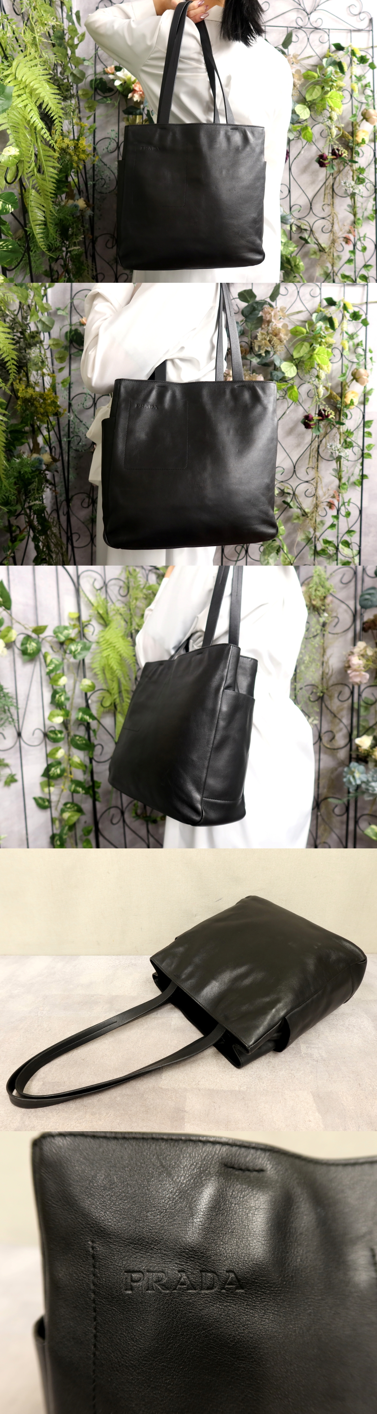 ●超美品●PRADA プラダ●メンズ●ロゴ型押し●カーフ レザー 本革●トート バッグ●黒●シルバー金具●イタリア製●B5 書類 収納●Js61544 收藏