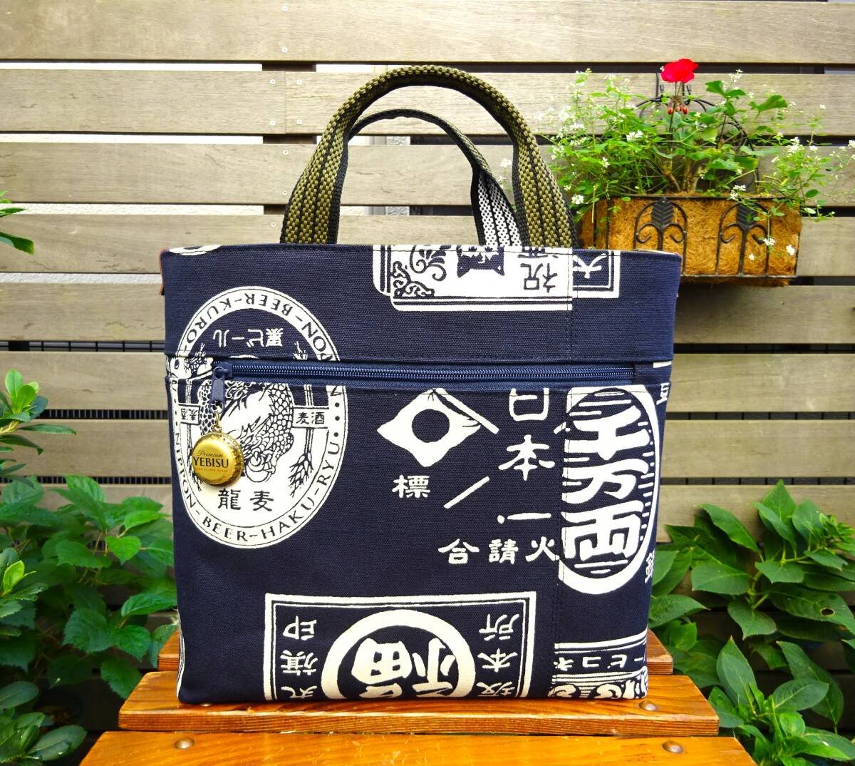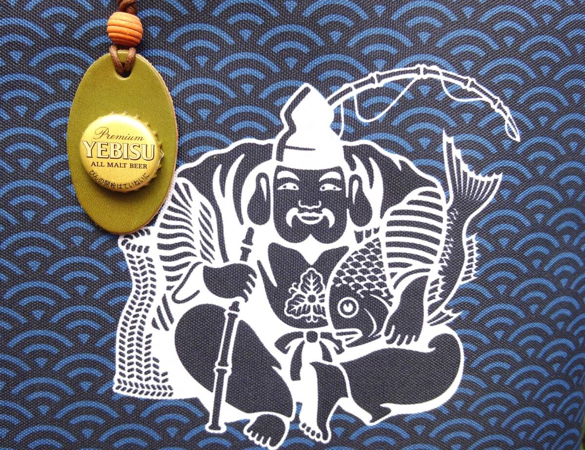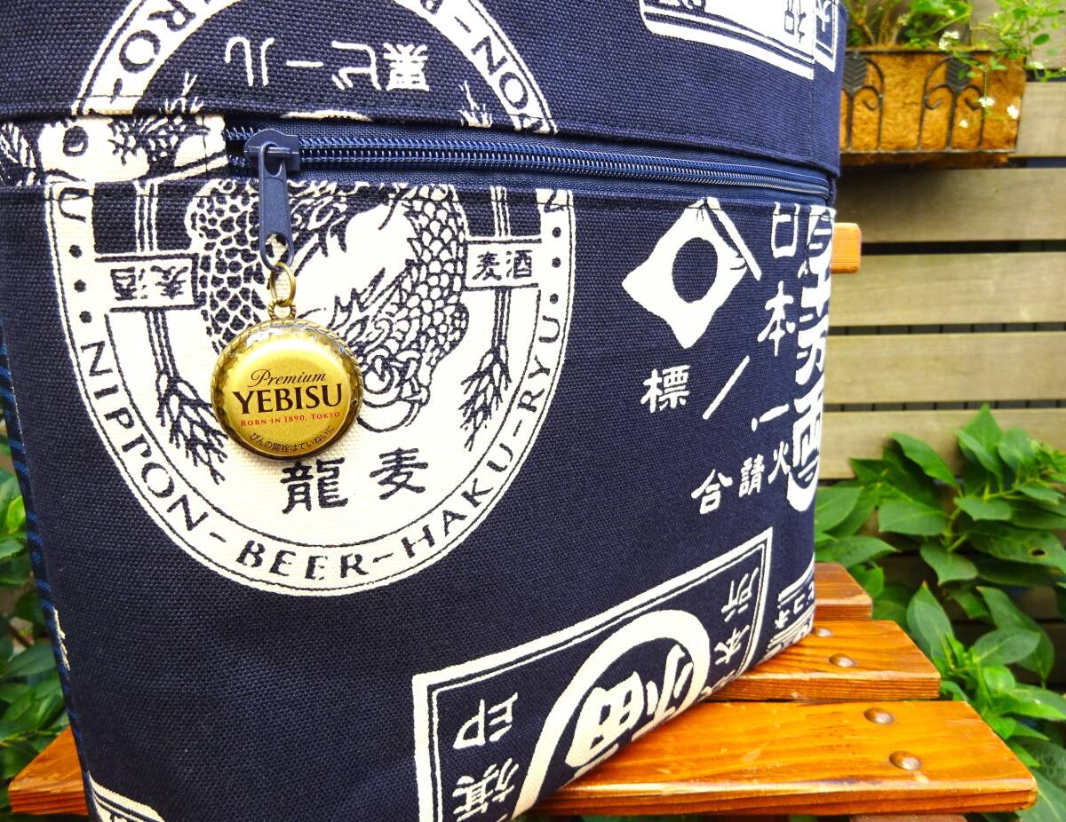 ◆送料無料◆人気レア品■YEBISU エビスビール トートバッグ(大)青海波■ 前掛け紐 本革王冠ストラップ&チャーム付き 手作り&リメイク 收藏
