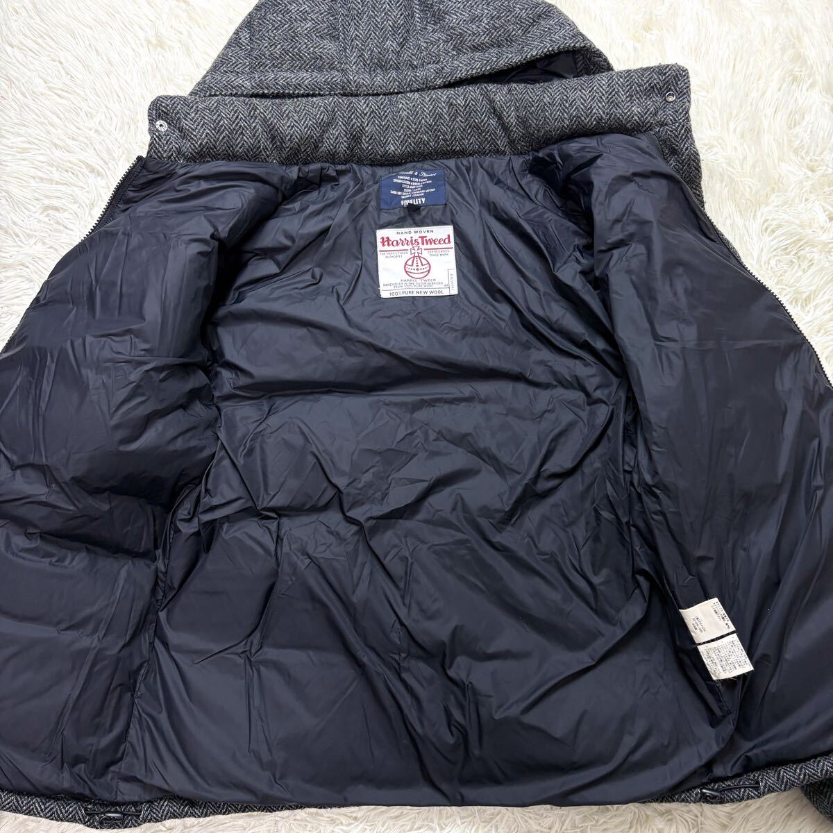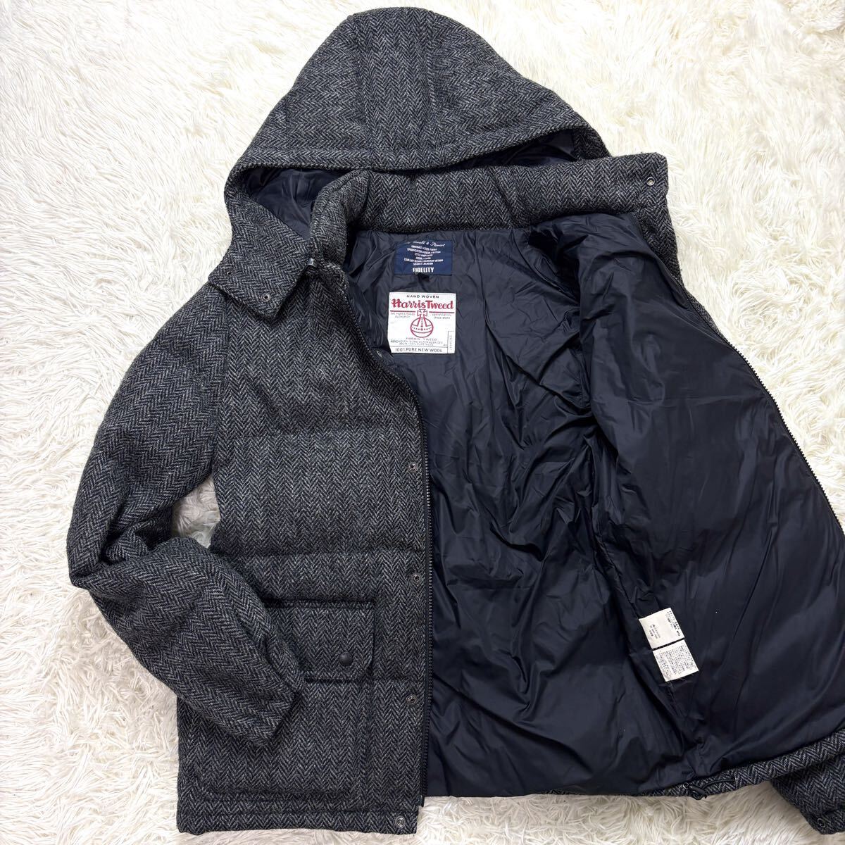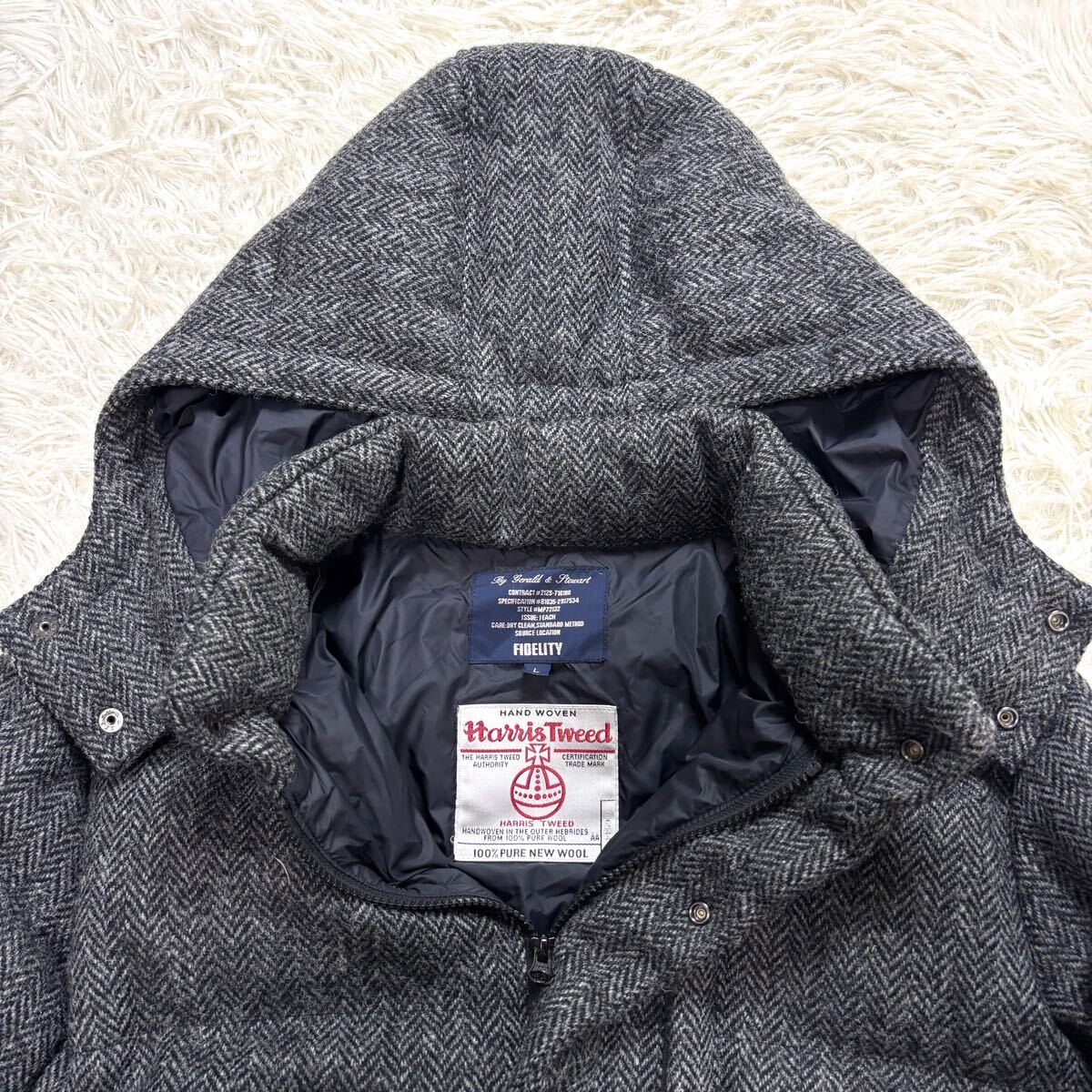 極美品/ヘリンボーン ●HARRIS TWEED FIDERITY ハリスツイード ダウンジャケット Lサイズ 肉厚 アウター グレー 灰色 Lサイズ 2way フード 收藏