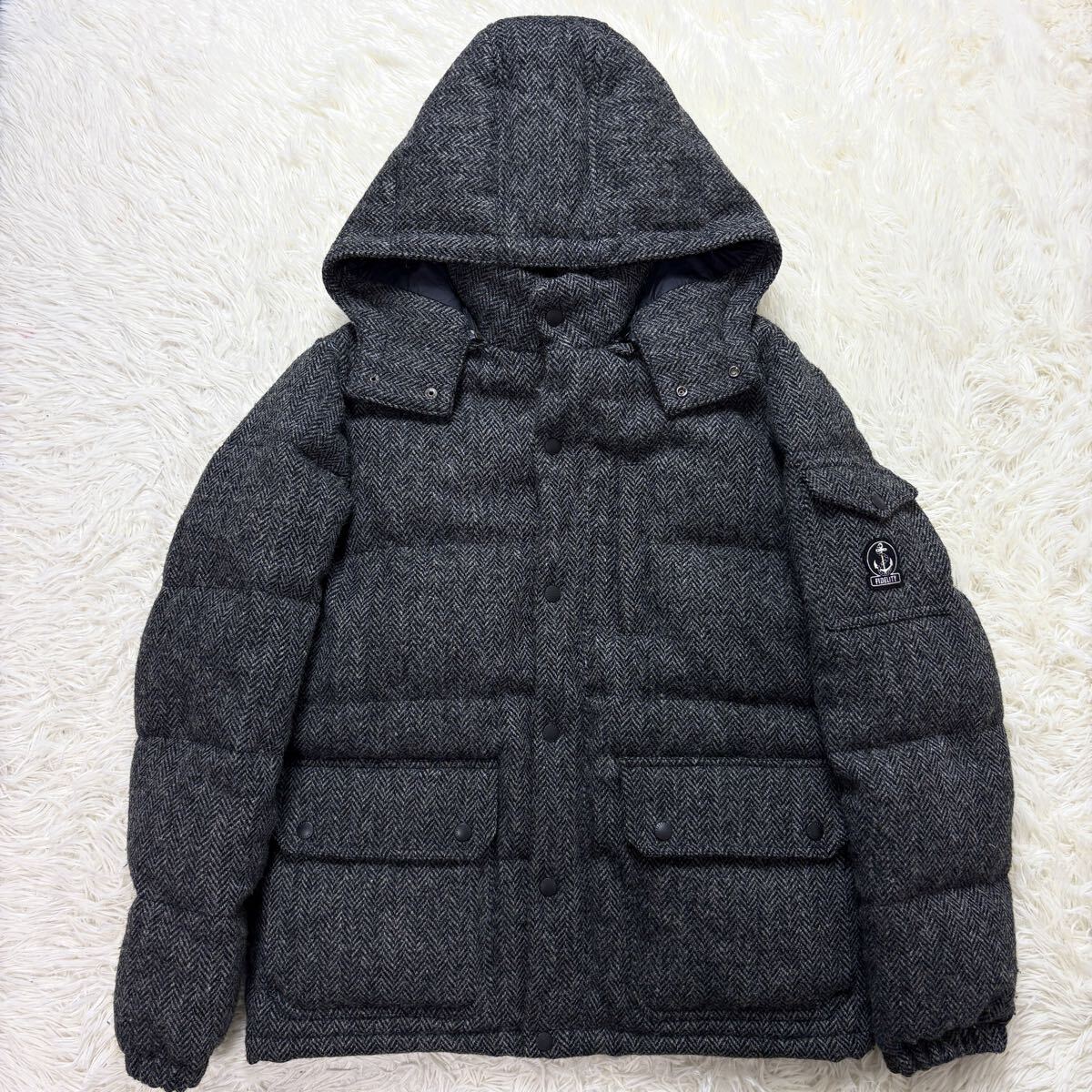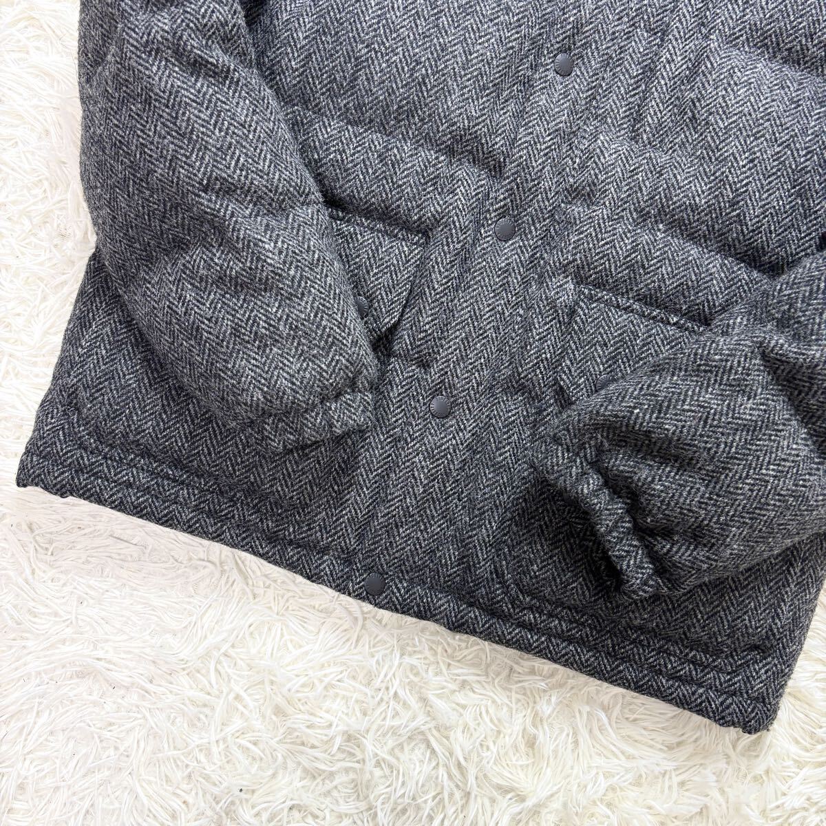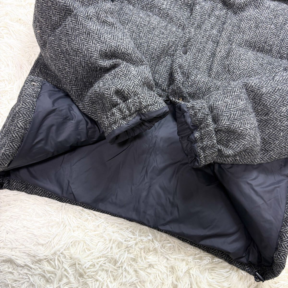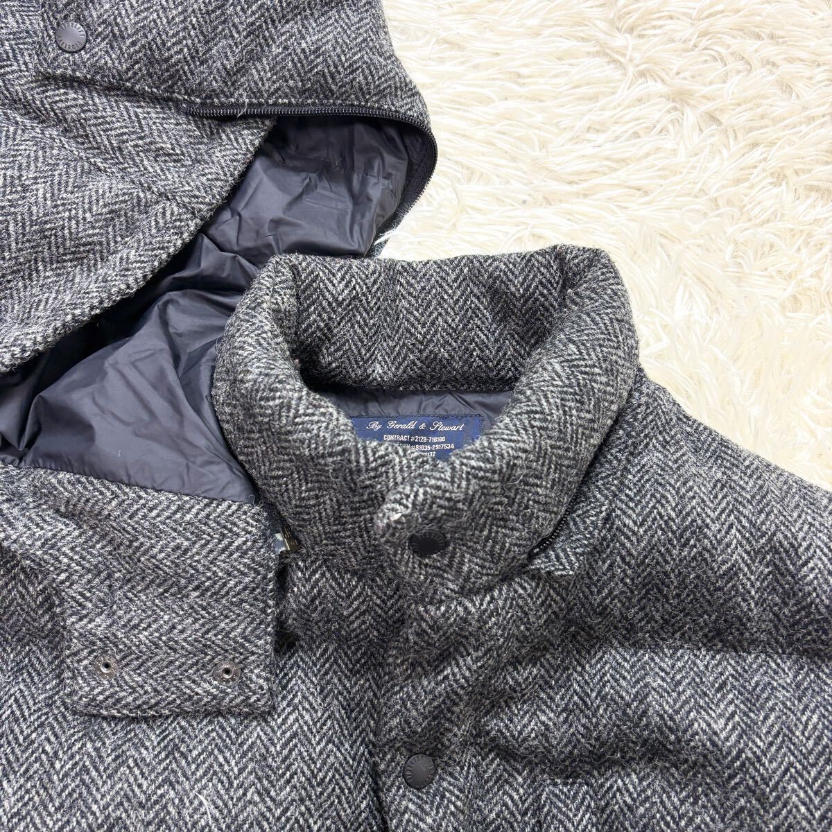 極美品/ヘリンボーン ●HARRIS TWEED FIDERITY ハリスツイード ダウンジャケット Lサイズ 肉厚 アウター グレー 灰色 Lサイズ 2way フード 收藏