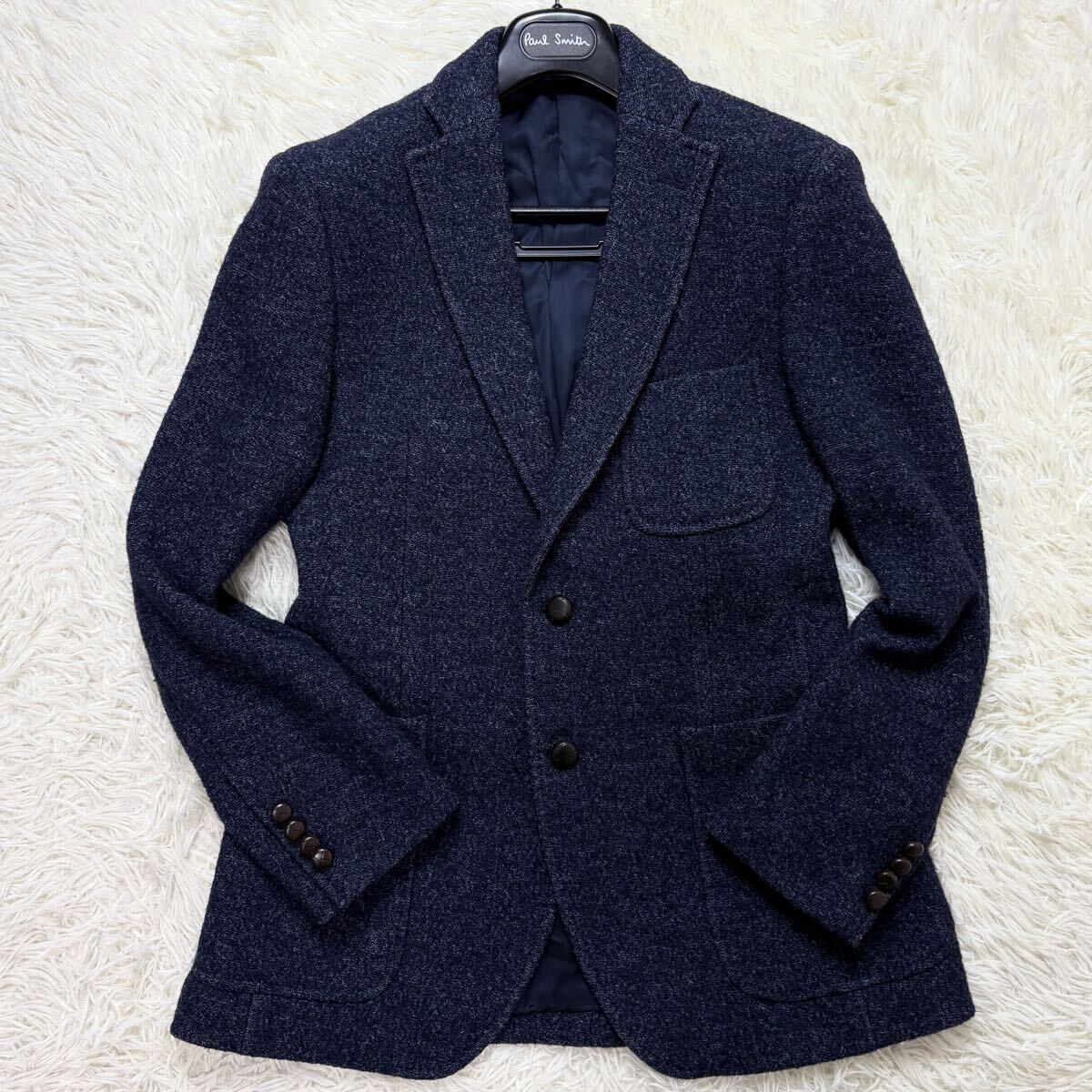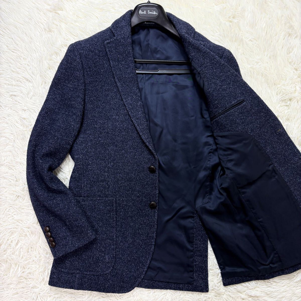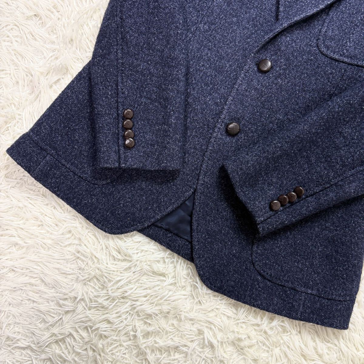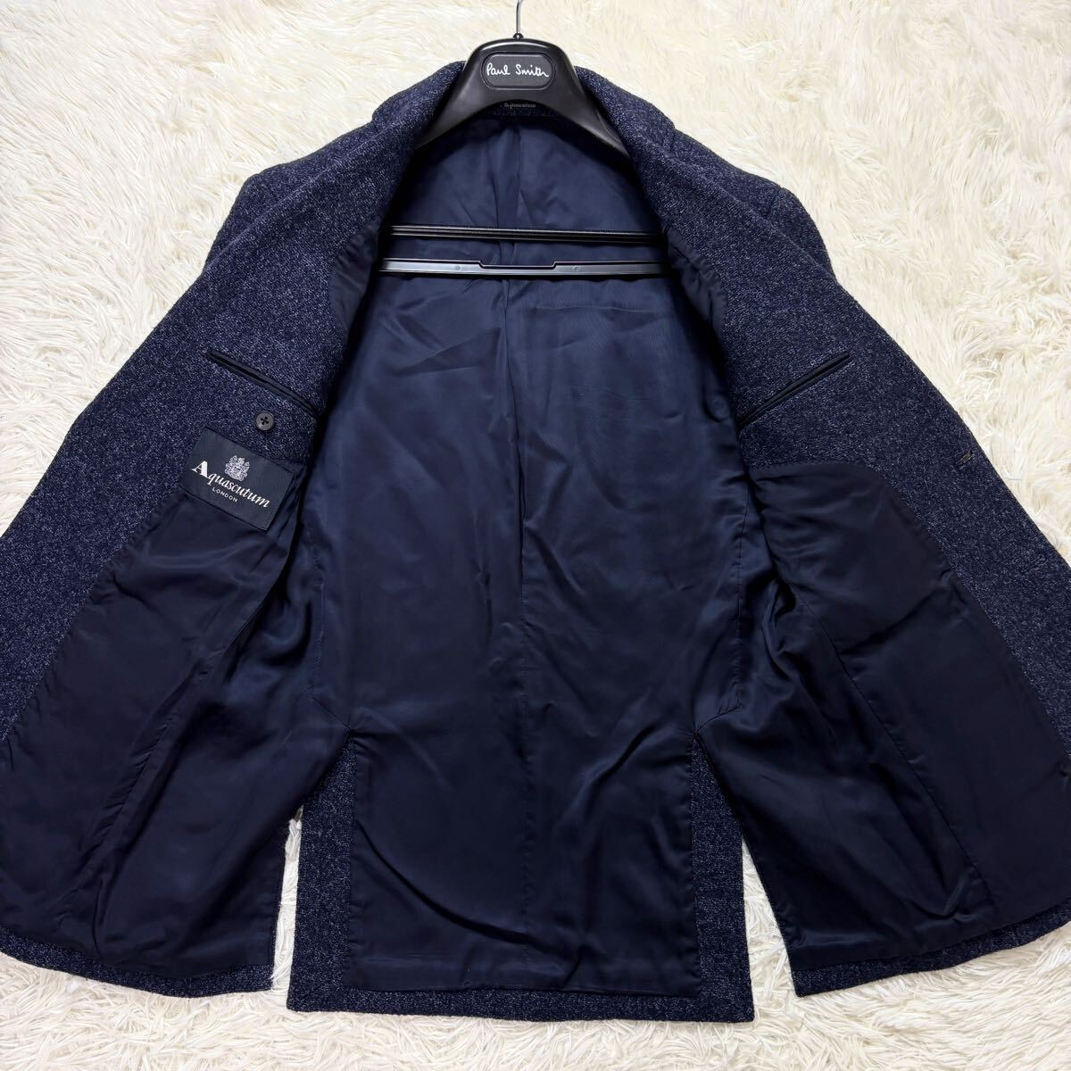 極美品/メランジ ●Aquascutum アクアスキュータム テーラードジャケット アンコン くるみボタン 胡桃 Lサイズ ネイビー 濃紺 ウール 秋冬 收藏