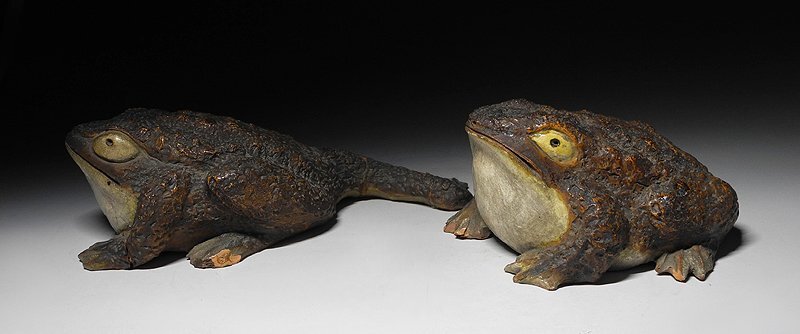 緑屋i■ 中川 鷺脚 造 鷺脚焼 蛙 置物 4点 時代物 古陶磁 i9/1027-7/8-4#80 收藏