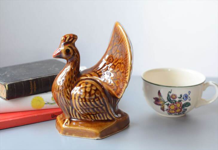 ドイツから きれいなブラウンの孔雀 陶器 置物 オブジェ 飾り アンティーク ヴィンテージ_ig4688 收藏