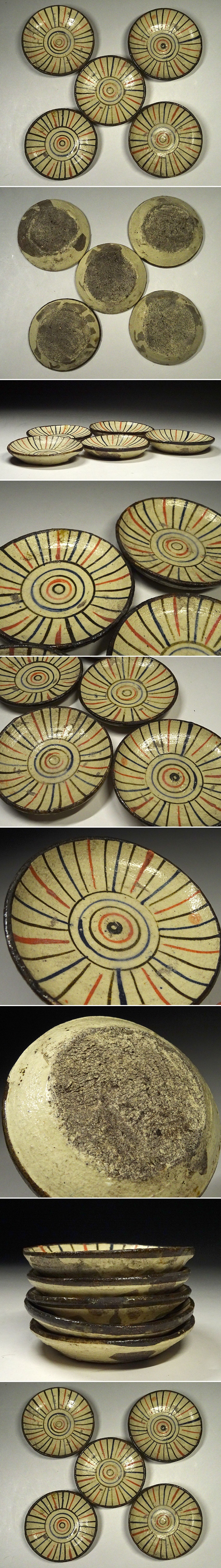 緑屋h■ 時代物 麦藁手 小皿 5点 古陶磁 民藝 民芸 i9/10-6463/30-4#60 收藏