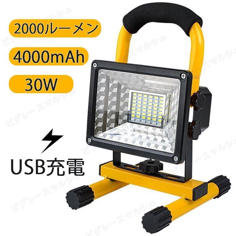 LED投光器 照超明るい2000ルーメン USB充電式作業灯 USB充電 明 工事 灯り 4000mAh 白色光 + 赤と青のフラッシュ アウトドア キャンプ 收藏