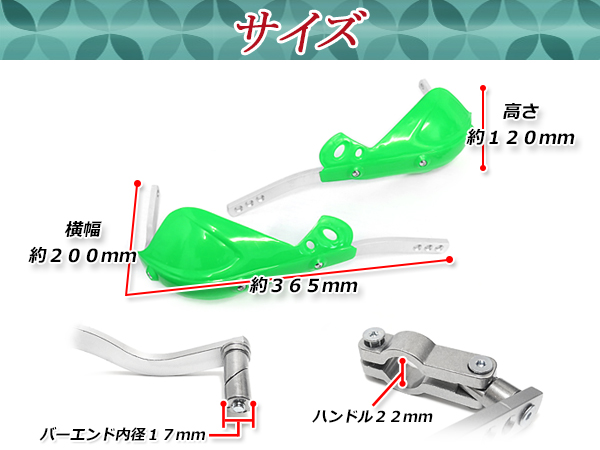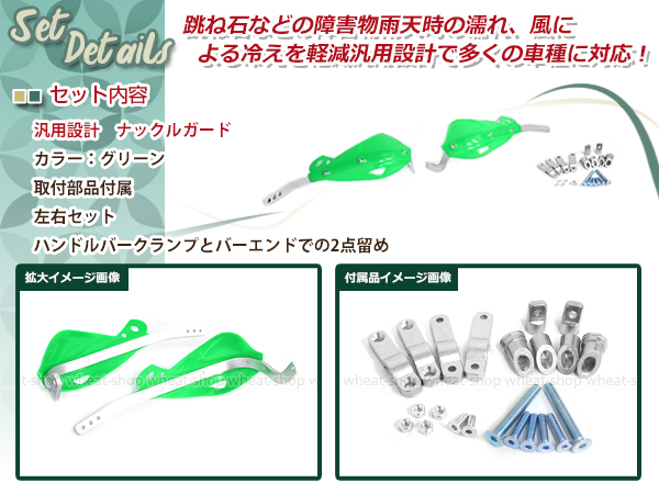 アルミ芯入り ナックルガード グリーン テックブッシュガード 左右セット 防風 防寒 防護 ハンドガード ハンドルカバー取付部品付属 收藏