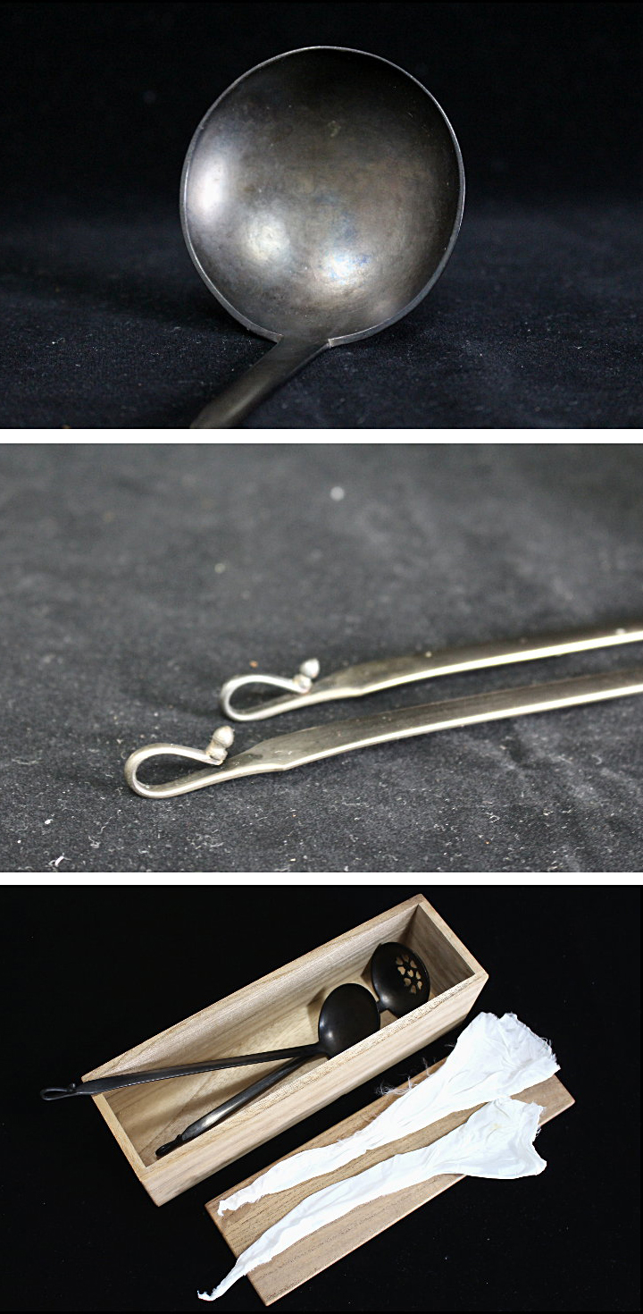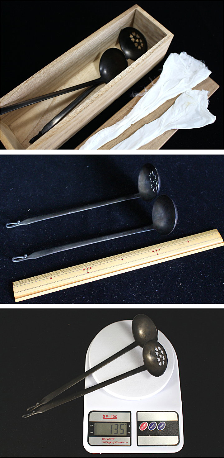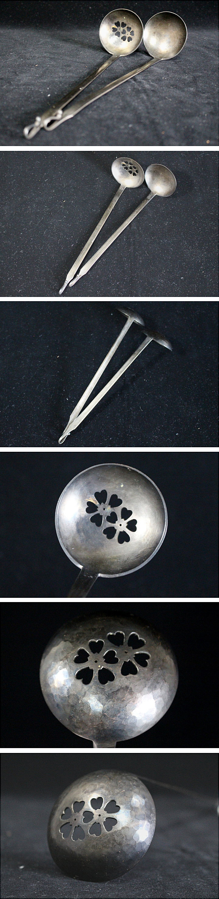 銅手打ちお玉 桜花穴あき+穴なし 2点組 おたま 鎚起お玉 検)京都/有次 レードル 打ち出しお玉 鎚打目 寄せ鍋 湯豆腐 調理用具 收藏