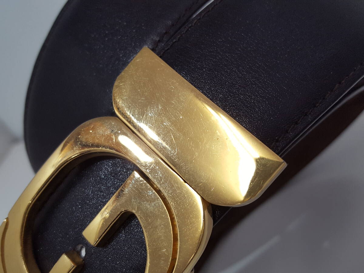 ※佐川急便の場合、離島など別途中継手数料がかかる地域が御座います。 その場合はお振込みを追加でお願いする場合が御座います事、 事前にご了承の程、宜しくお願い致します。 [商品名] 1円スタート GUCCI グッチ インターロッキングGバックル ベルト [サイズ] 全長約109cm, バックル約4.3×7.5cm, ベルト幅約3.8cm, ウエスト周り約90-100cm, ホール数5個, ホール間隔2.5cm [素材] 金属素材×本革レザー [カラー] ゴールド系×ブラック [仕様] バックル取り外し不可タイプ [状態] バックルにくすみとキズ、 レザー部分に若干の汚れ、全体に掻きキズが御座いますが、 その他は良いと思います。 付属品は写真のものが全てです。 記載の無い状態がある場合も御座いますが、写真でご判断下さい。 上記状態をご理解頂ける方のみご入札の程宜しくお願い致します。 [状態ランク] B