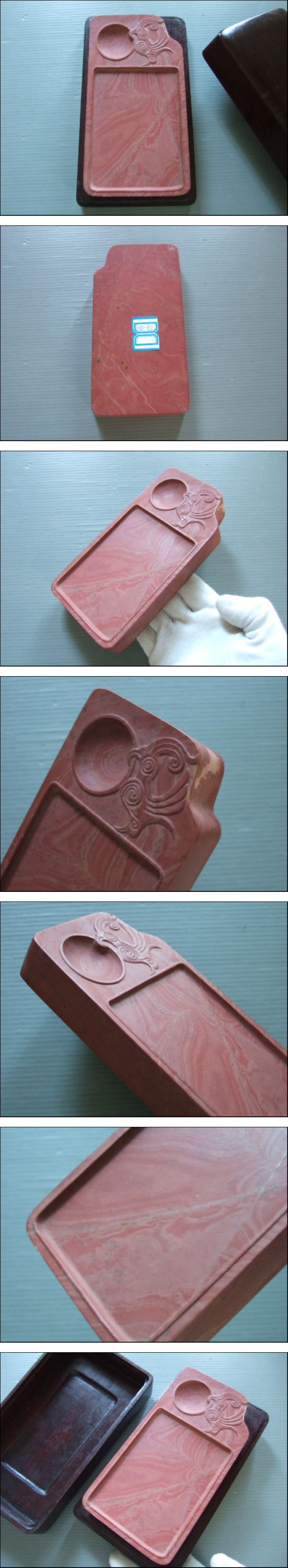 | 商品説明 | 流麗なるマーブル状の文様を有する紅糸石硯。希少逸品也。 本体 サイズ= 縦 16㎝ ・横 8.5㎝ ・厚さ 2.5㎝程 ・ 重量 735g 程〈 唐木箱含まず〉。 長期保管品。未使用 良状態。 画像ご確認、ご納得のうえ御入札願います。 □ 送料 / 無料にて承ります。free shipping。 |