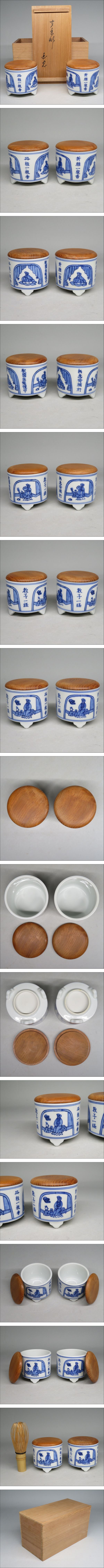 | 香道家の蔵出し◆【染付聞香炉】一対 香道具◆ 沈香 伽羅/志野流/御家流/御用達 | ||